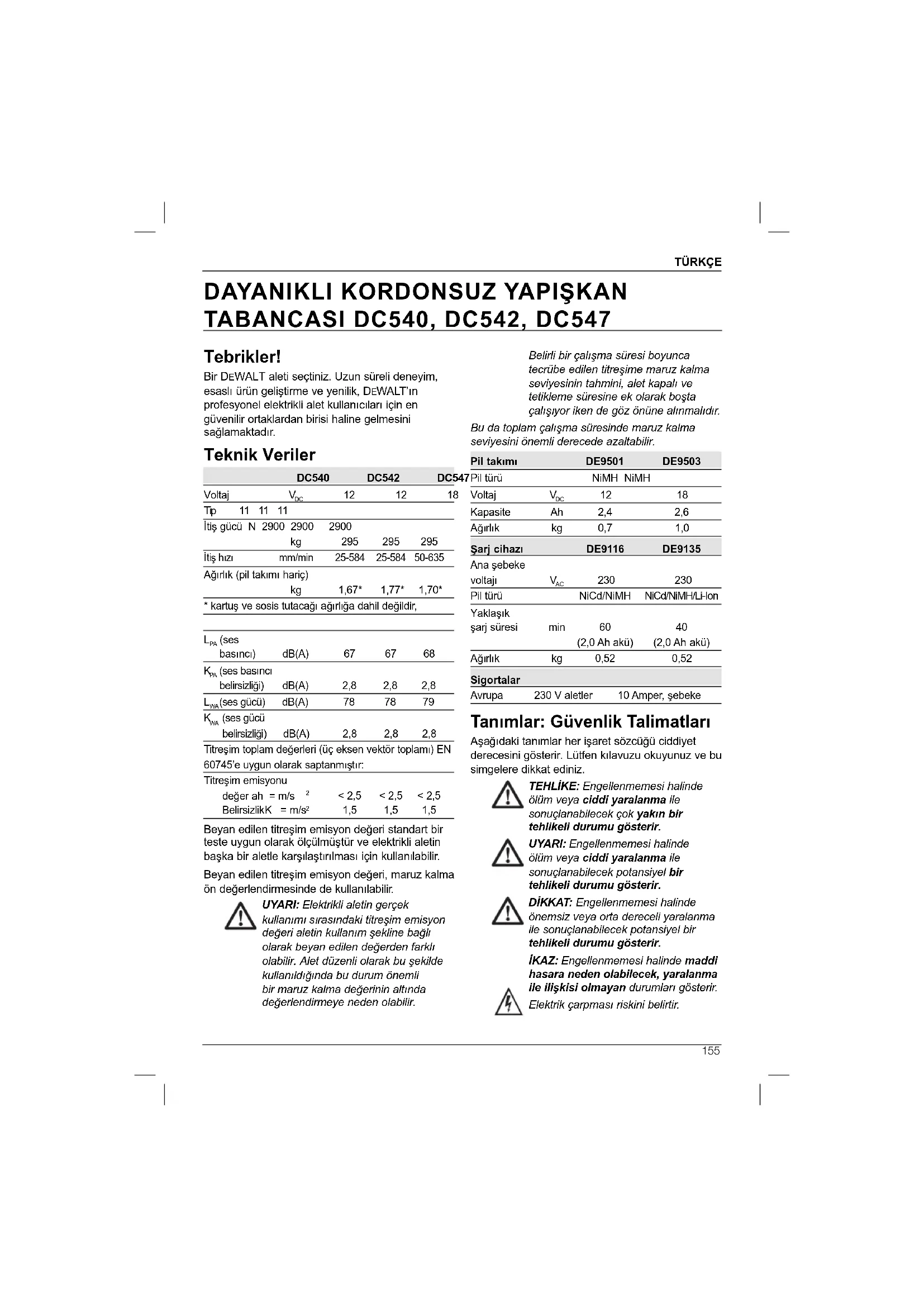 Cihazın kılavuzunu ücretsiz bulun DC540 DEWALT PDF formatında.