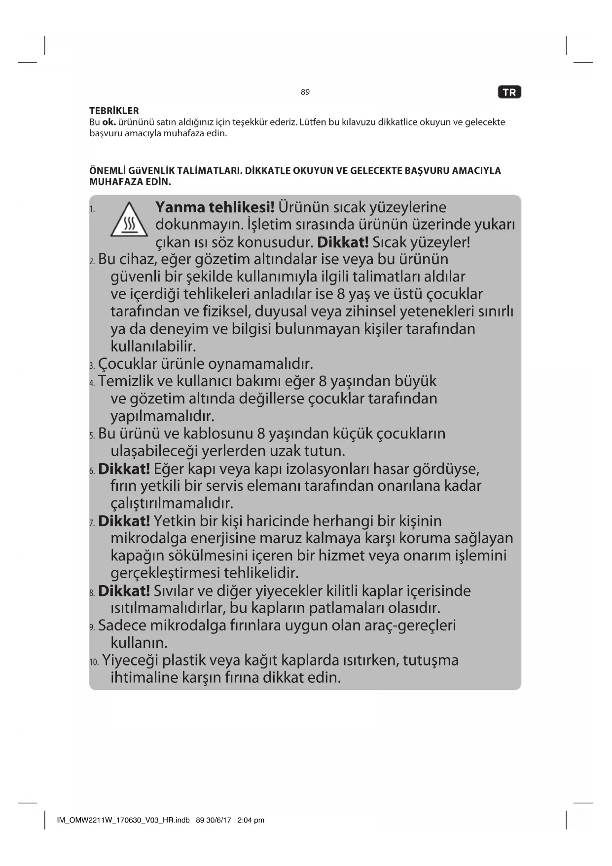 ihtimaline karşın fırına dikkat edin. IM_OMW2211W_170630_V03_HR.indb 89 30/6/17 2:04 pm90