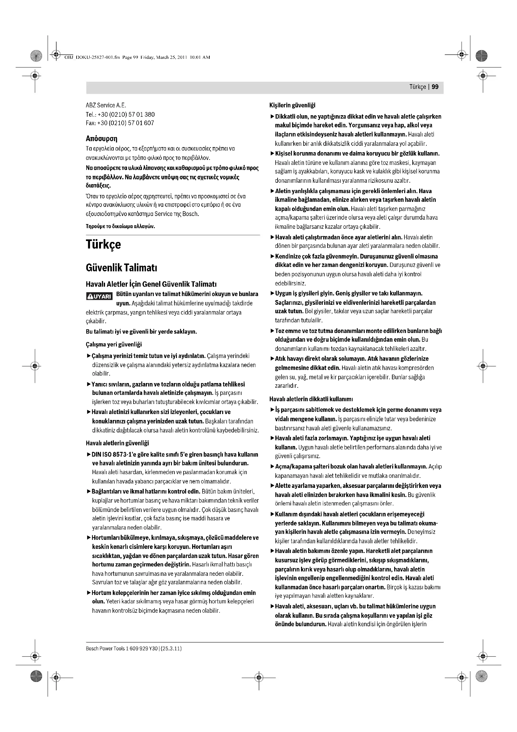 Ağrlğ EPTA-Procedure 01/2003’e göre kg 3,89 3,8 4,26 Gürültü/Titreşim bilgisi Ölçüm değerleri EN 12549’a göre belirlenmektedir. Haval aletin A değerlendirmeli gürültü seviyesi tipik olarak şöyledir: Ses basnc seviyesi XXX dB(A); gürültü emisyonu seviyesi YYY dB(A). Tolerans K=2dB. Koruyucu kulaklk kullann! dB(A) dB(A) XXX = 110 YYY = 123 XXX = 110 YYY = 123 XXX = 94 YYY = 107 Toplam titreşim değeri EN ISO 20643’e göre tespit edilmektedir: Titreşim emisyon değeri a