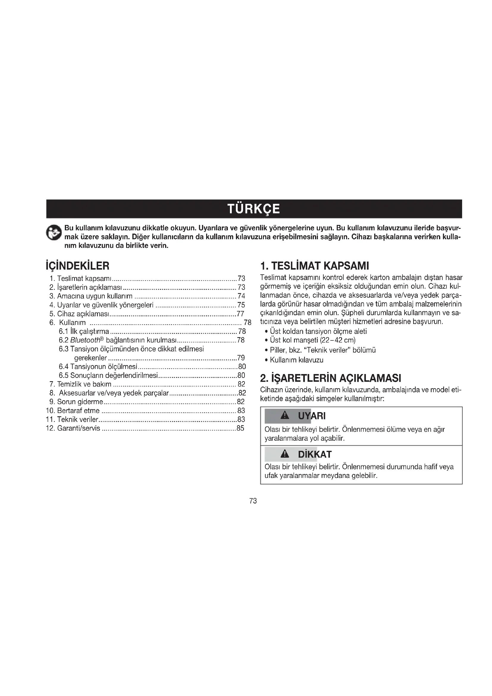 2. İşaretlerin açıklaması ........................................................... 73