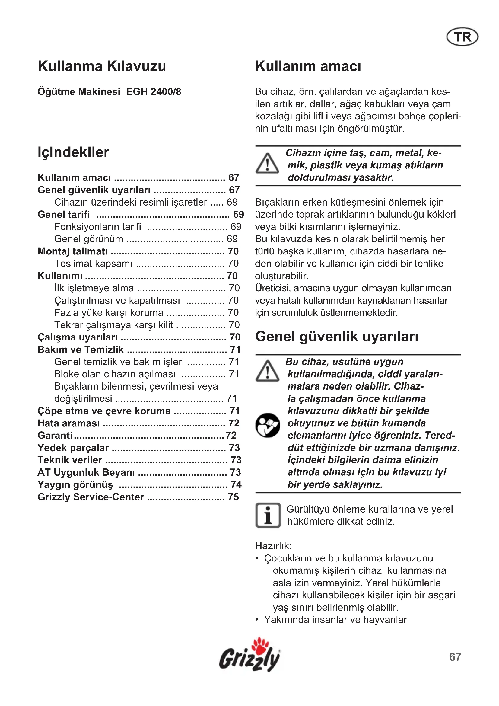 KULLANIM KILAVUZU EGH 24008 Grizzly