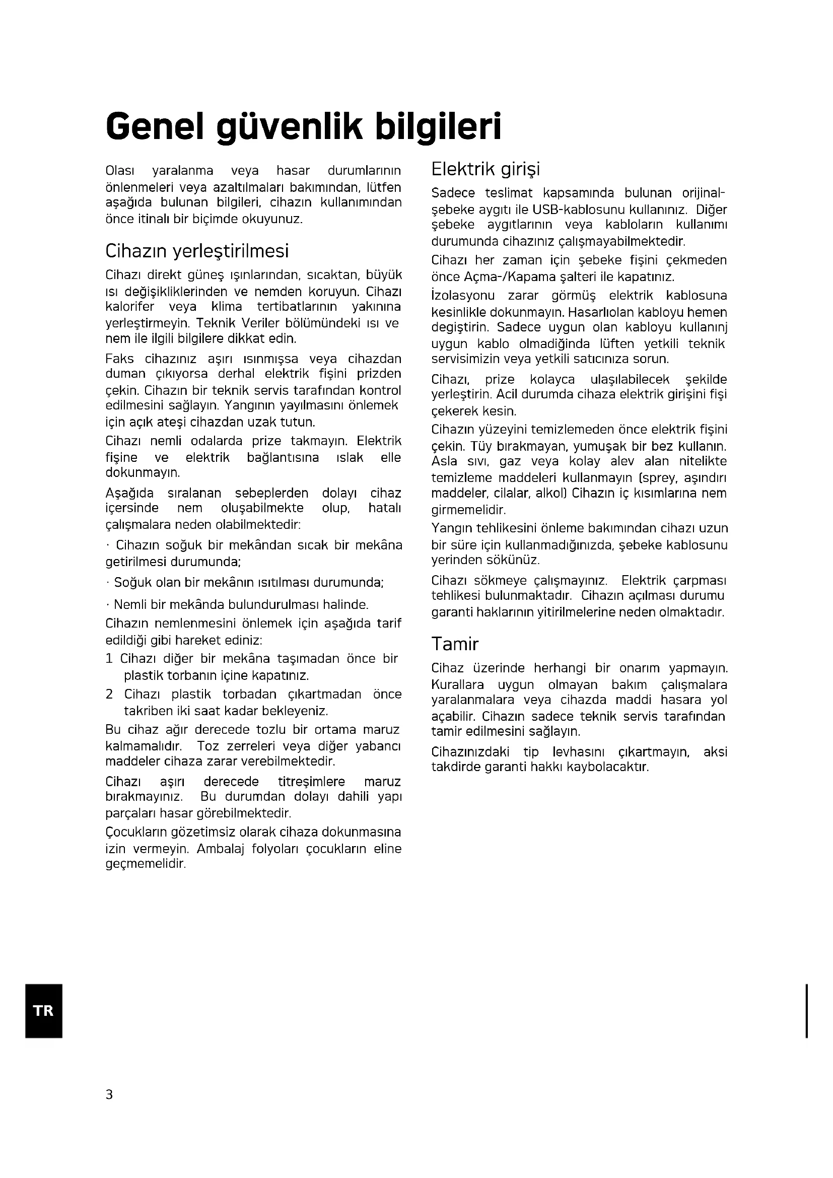 Kullanma kılavuzunu dikkatle okuyun. Cihazın sorunsuz çalışmasını sağlamak için özellikle güvenlik bilgilerine dikkat edin. Bu bilgilere dikkat edilmemesi durumunda üretici hiçbir sorumluluk üstlenmeyecektir.