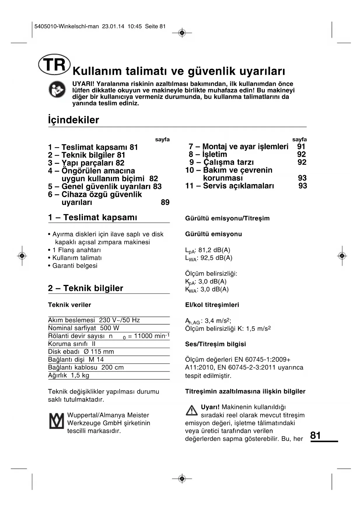 - Meister alelteri siki kalite kontrolunden geçirilir. Buna ragmen fonksiyon arizasi meydana geldiginde aleti servis adresimize postalayin. Aletiniz kisa sure icinde tamir edilecektir.