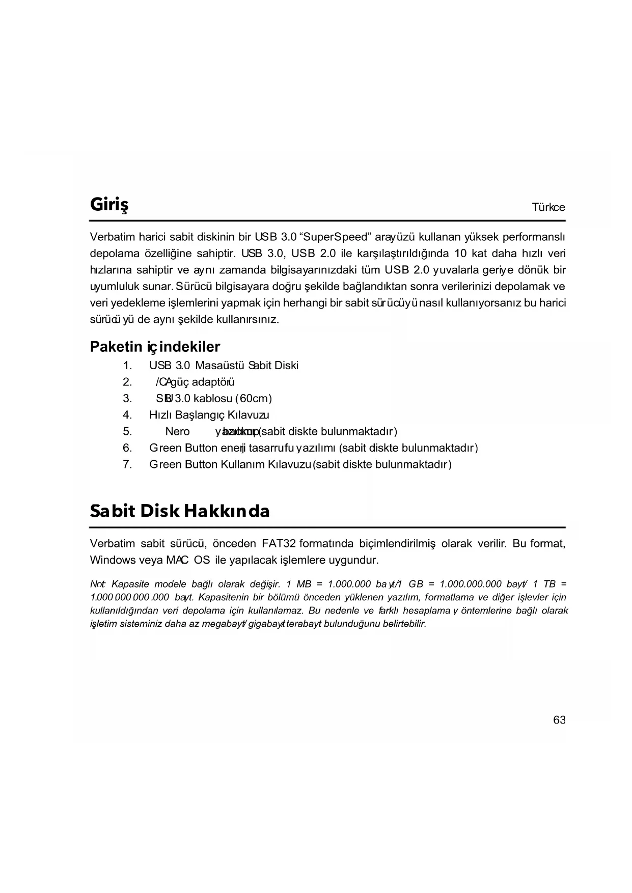 Cihazınız için talimatları indirin Harici sabit disk PDF formatında ücretsiz! Kılavuzunuzu bulun Store 'n' Save - VERBATIM ve elektronik cihazınızı yeniden ele alın. Bu sayfada cihazınızın kullanımı için gerekli tüm belgeler yayınlanmaktadır. Store 'n' Save markasının VERBATIM.