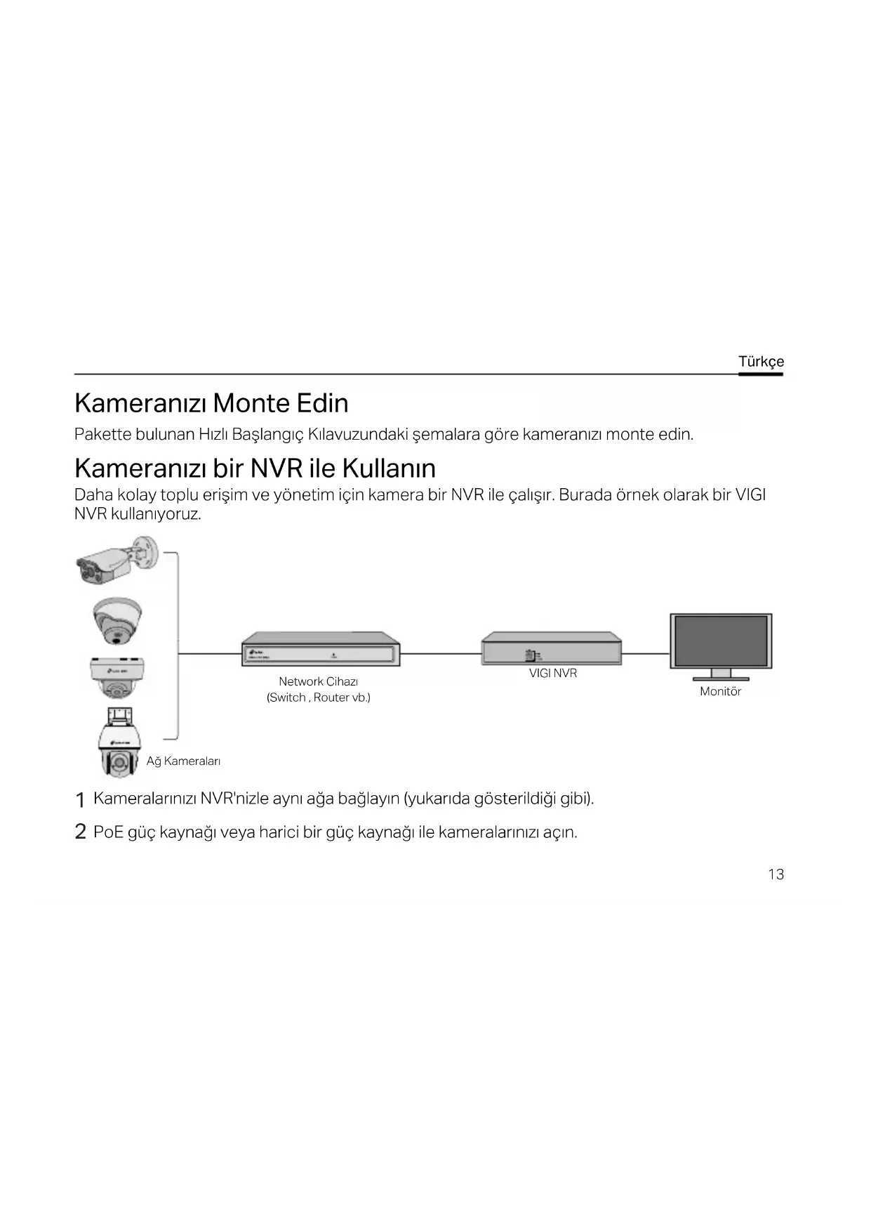 Kamera eklemek için NVR Kullanıcı Kılavuzuna bakın.15 Türkçe Diğer Yönetim Metodları Ayrıca, aşağıdaki yöntemlerden herhangi biriyle kameralarınıza erişebilir ve bunları yönetebilirsiniz. Yöntem 1: VIGI Uygulaması aracılığıyla Uzaktan canlı video izleyin, kameraları yönetin ve anında uyarı alın.