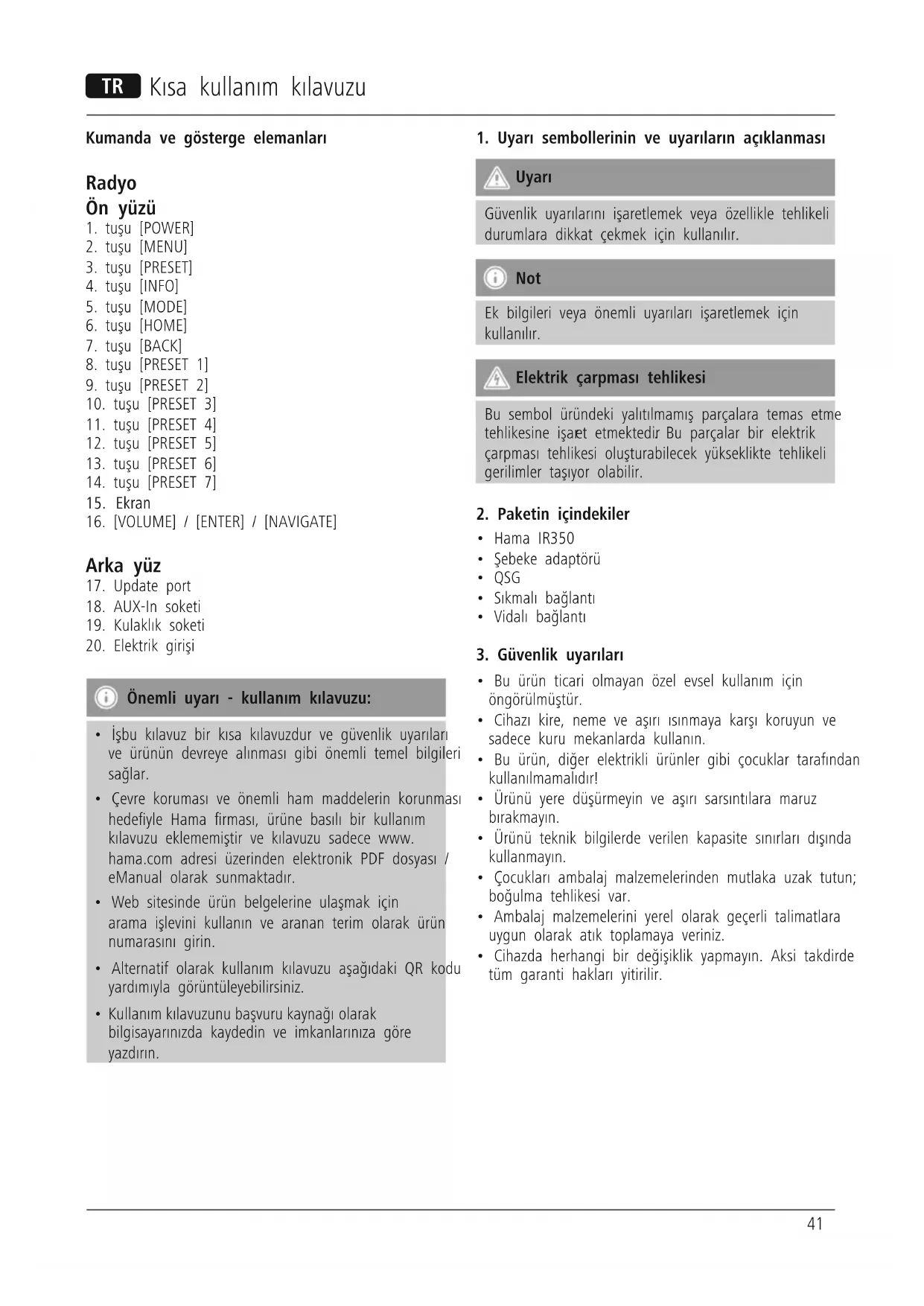 IR350 - Radyo HAMA - Ücretsiz kullanım kılavuzu