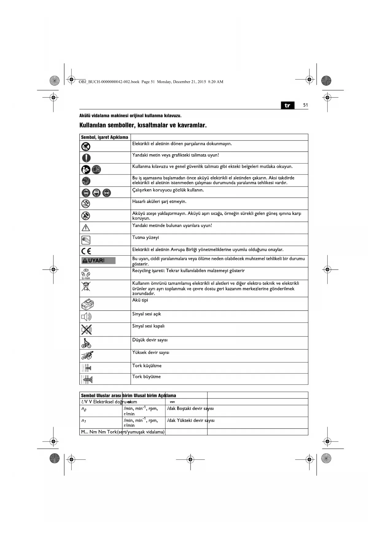Temel ve türetilen değerler uluslar arası birimler sistemi SI’den alınmıştır. Sembol Uluslar arası birim Ulusal birim Açıklama OBJ_BUCH-0000000042-002.book Page 52 Monday, December 21, 2015 8:20 AM53