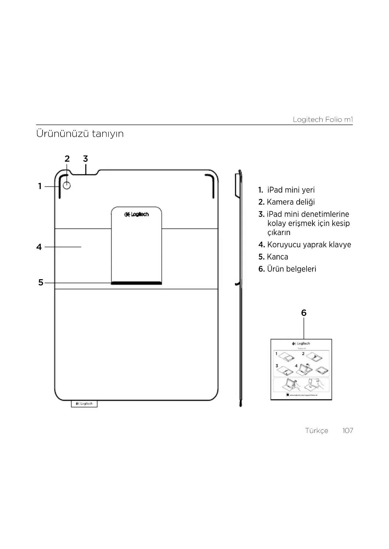 Folio m1www.logitech.com/support/folio-m1Logitech Folio m1 108 Türkçe Dosyayı kurma ve iPad mini’nizle kullanma Dosyanızı kurma