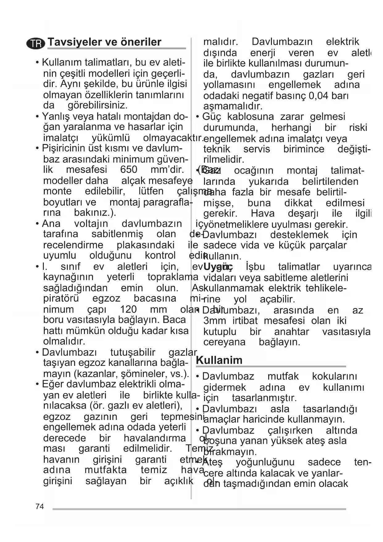 - Davlumbazı asla tasarlandığı amaçlarharicindekullanmayın.