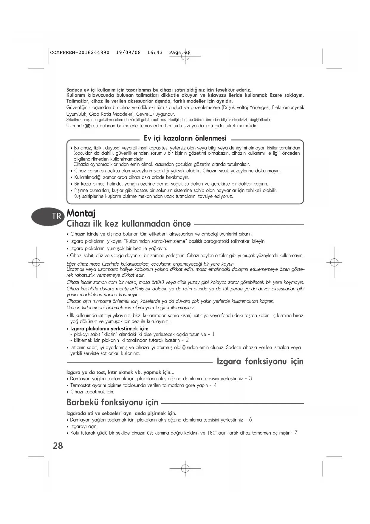 COMFPREM-2016244890 19/09/08 16:43 Page 2728 Montaj Cihaz ilk kez kullanmadan önce