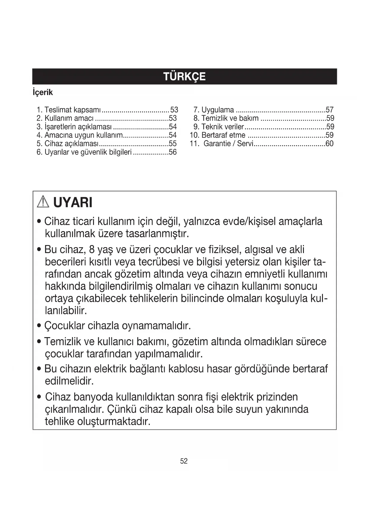 - Cihazı üçüncü şahıslara verirken kullanım kılavuzunu yanında verin.56 57