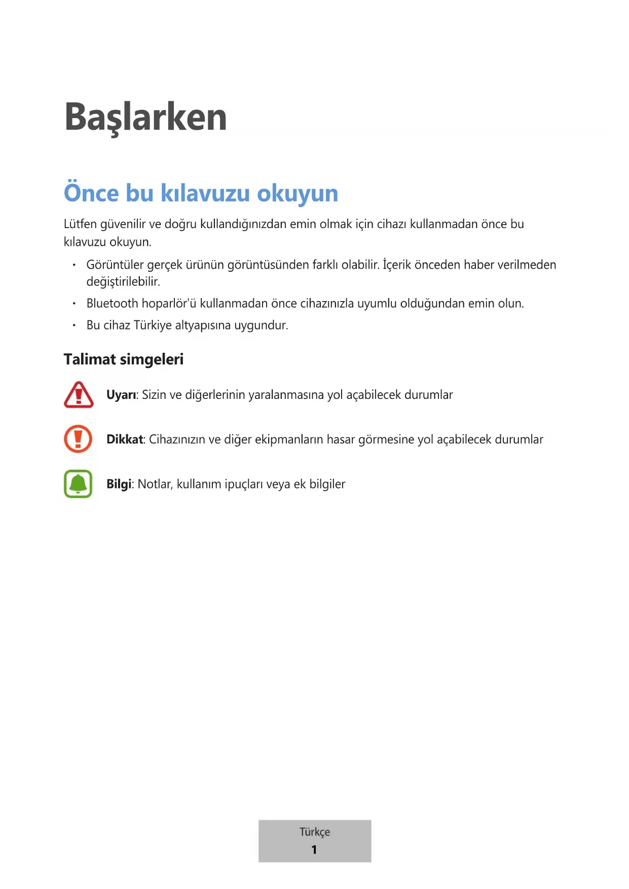 Tüm cihazların kullanılabilirliği tamamen üretici şirkete bağlı olarak değişebilir. Kullanılabilir cihazlarla ilgili daha fazla bilgi için Samsung web sitesine bakınız. Türkçe 3Başlarken
