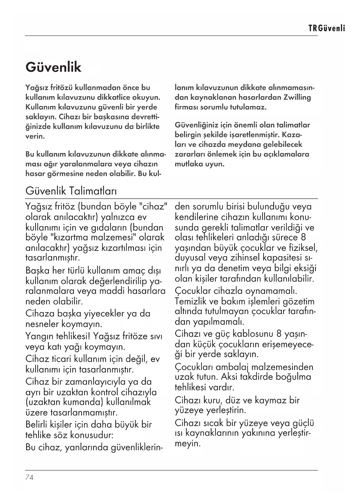 lanim kilavuzunun dikkate alinmamasindan kaynaklanan hasarlardan Zwilling firmasi sorumlu tutulamaz.