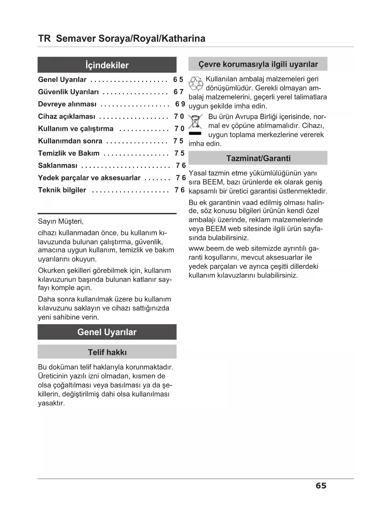 Samowar Katharina - Semaver BEEM - Ücretsiz kullanım kılavuzu