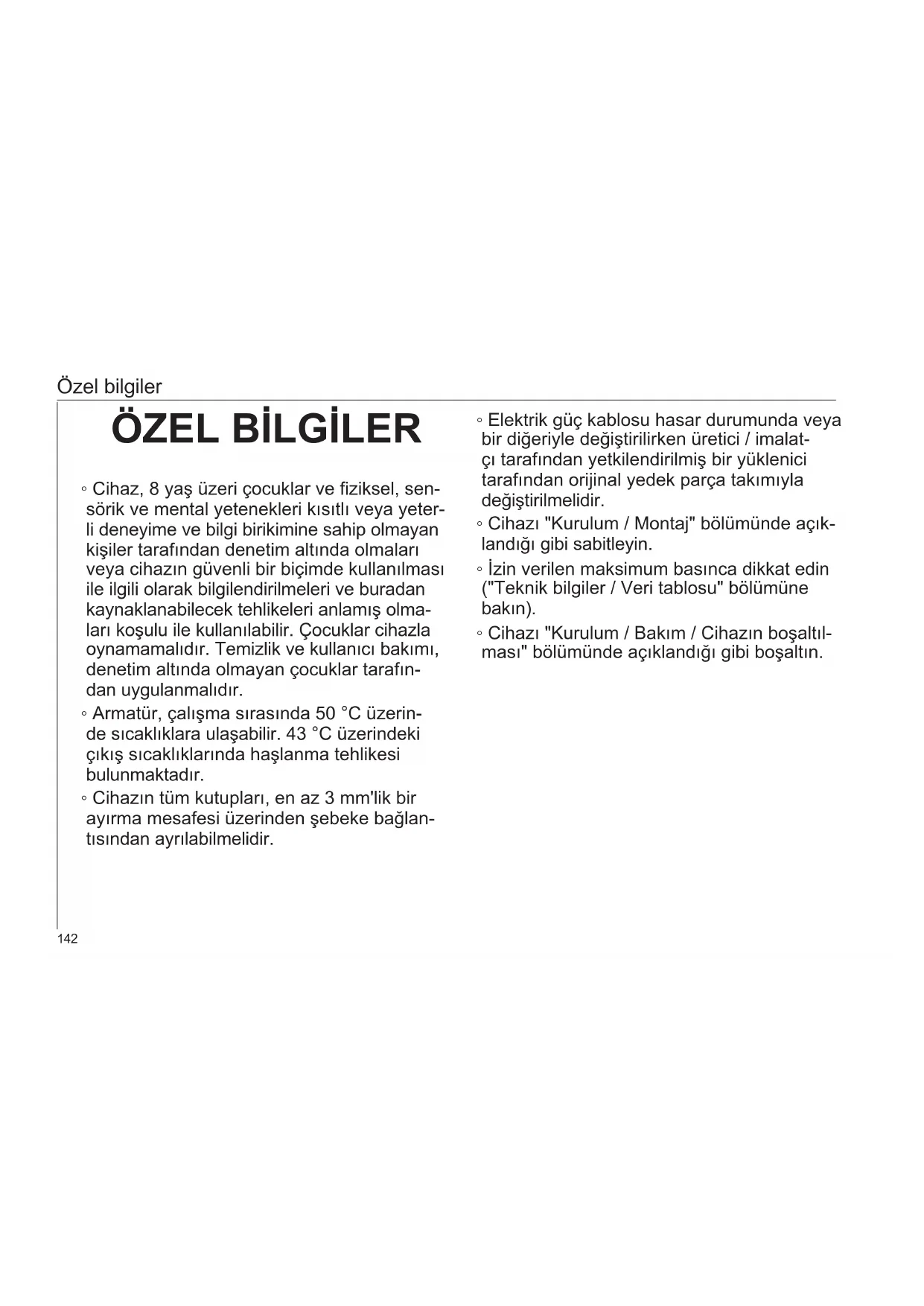 Özel bilgiler ÖZEL BILGILER
