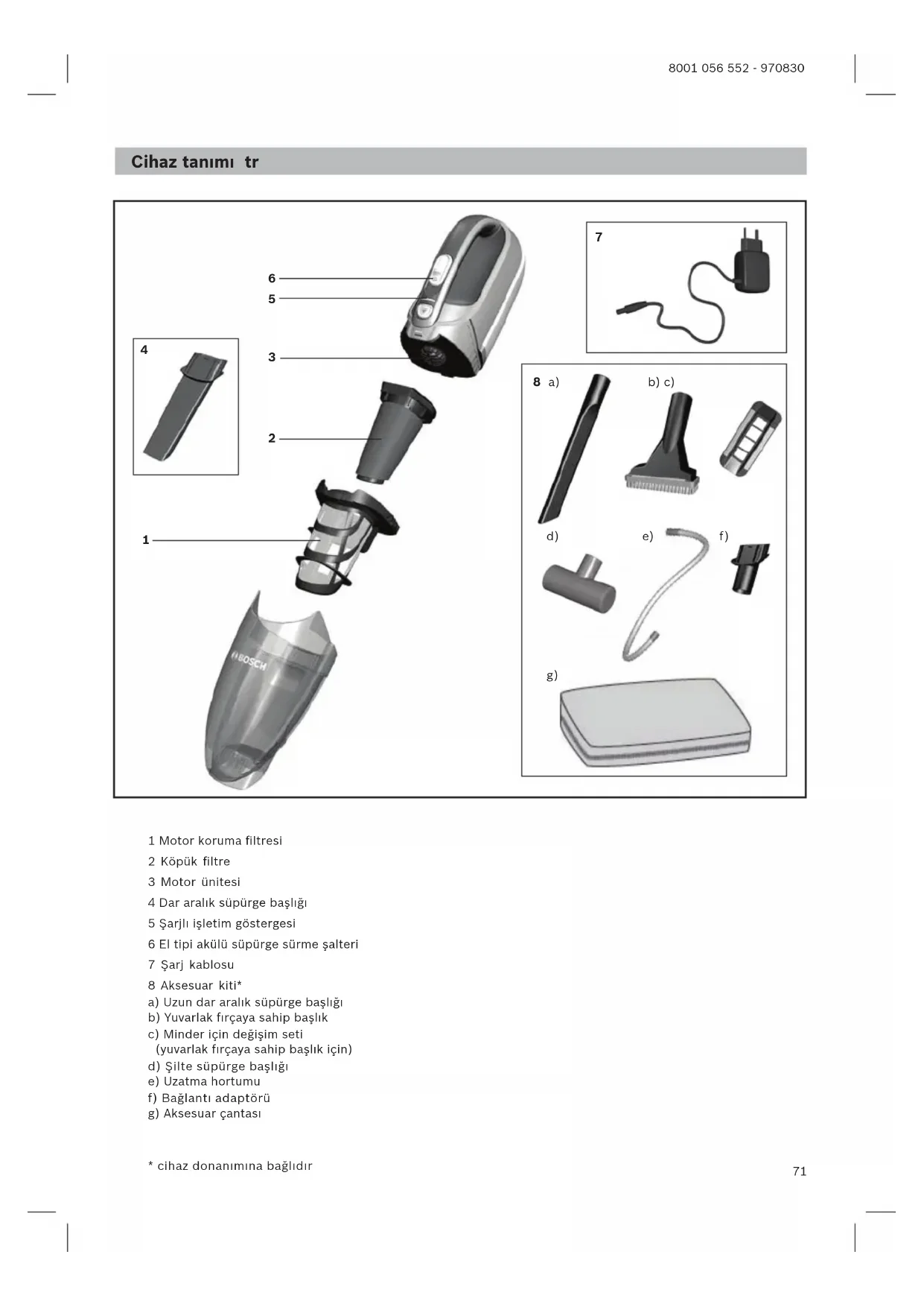 Süpürge olarak Bosch'un BHN modelini almaya karar verdiğiniz için teşekkür ederiz. Bu kullanım kılavuzunda çeşitli BHN – modelleri hakkında bilgi verilecektir. Bu nedenle açıklanan tüm donanım özellikleri ve fonksiyonlar cihazınıza uygun olmayabilir. Mümkün olan en iyi emme sonucunu elde etmek için süpürgenize özel olarak üretilmiş orijinal Bosch aksesuarlarını kullanmanız gerekir. Lütfen resimli sayfaları açınız! Şarj
