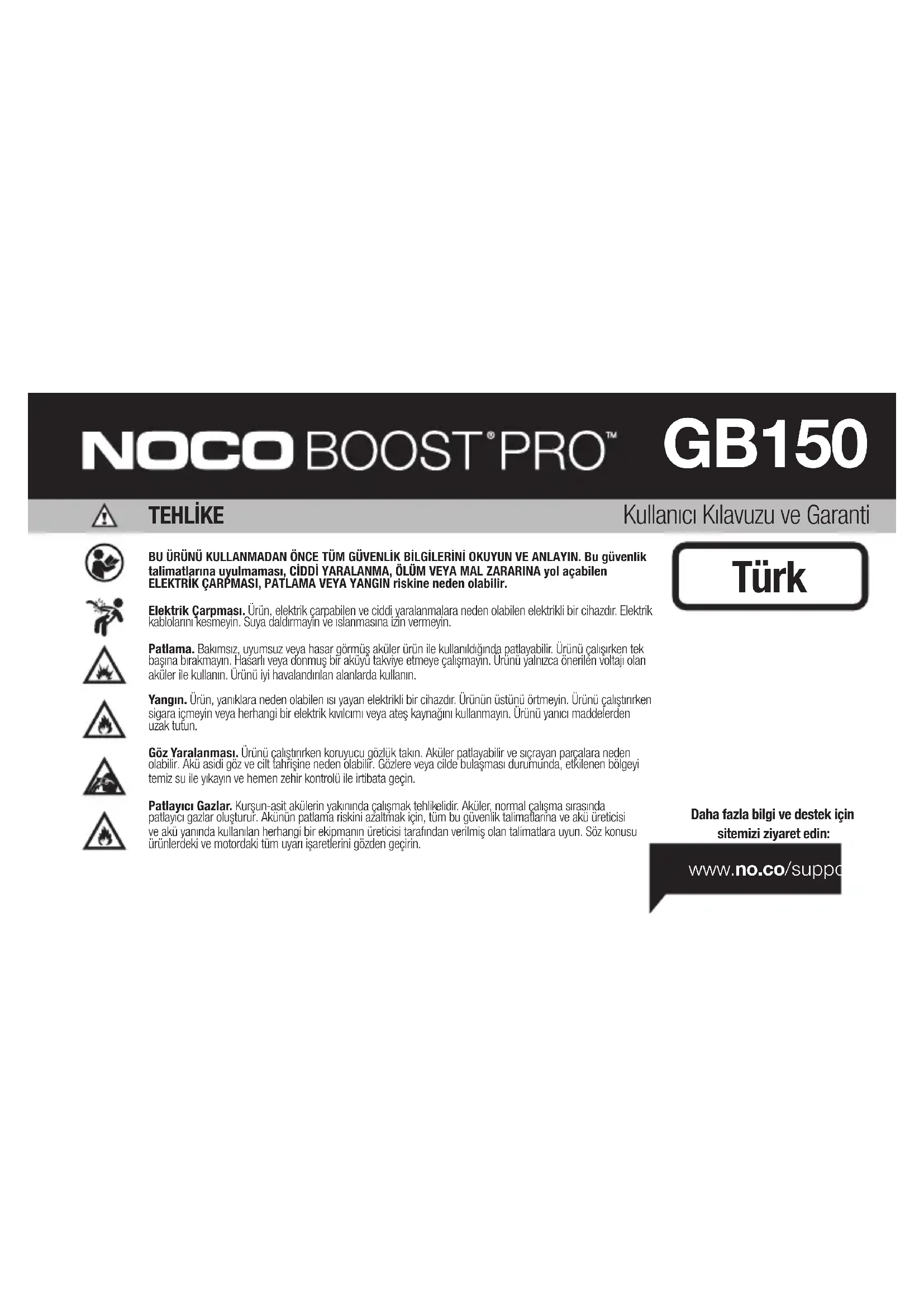 Cihazın kılavuzunu ücretsiz bulun Genius Boost Pro GB150 NOCO PDF formatında.