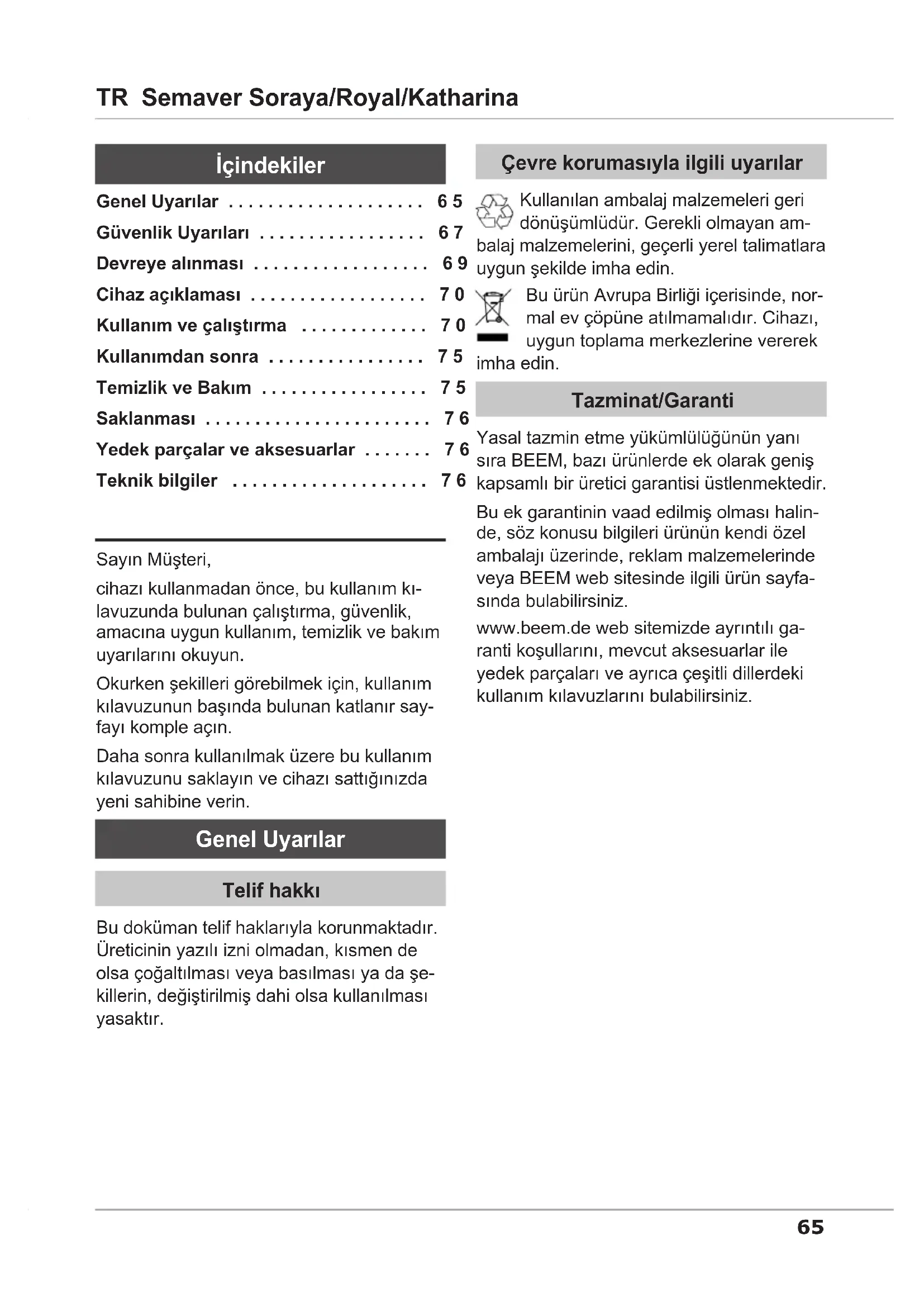 www.beem.de web sitemizde ayrintili garanti kosullarini, mevcut aksesuarlar ile yedek parcalari ve ayrica ceşitli dillerdeki kullanim kilavuzlarini bulabilirsiniz.
