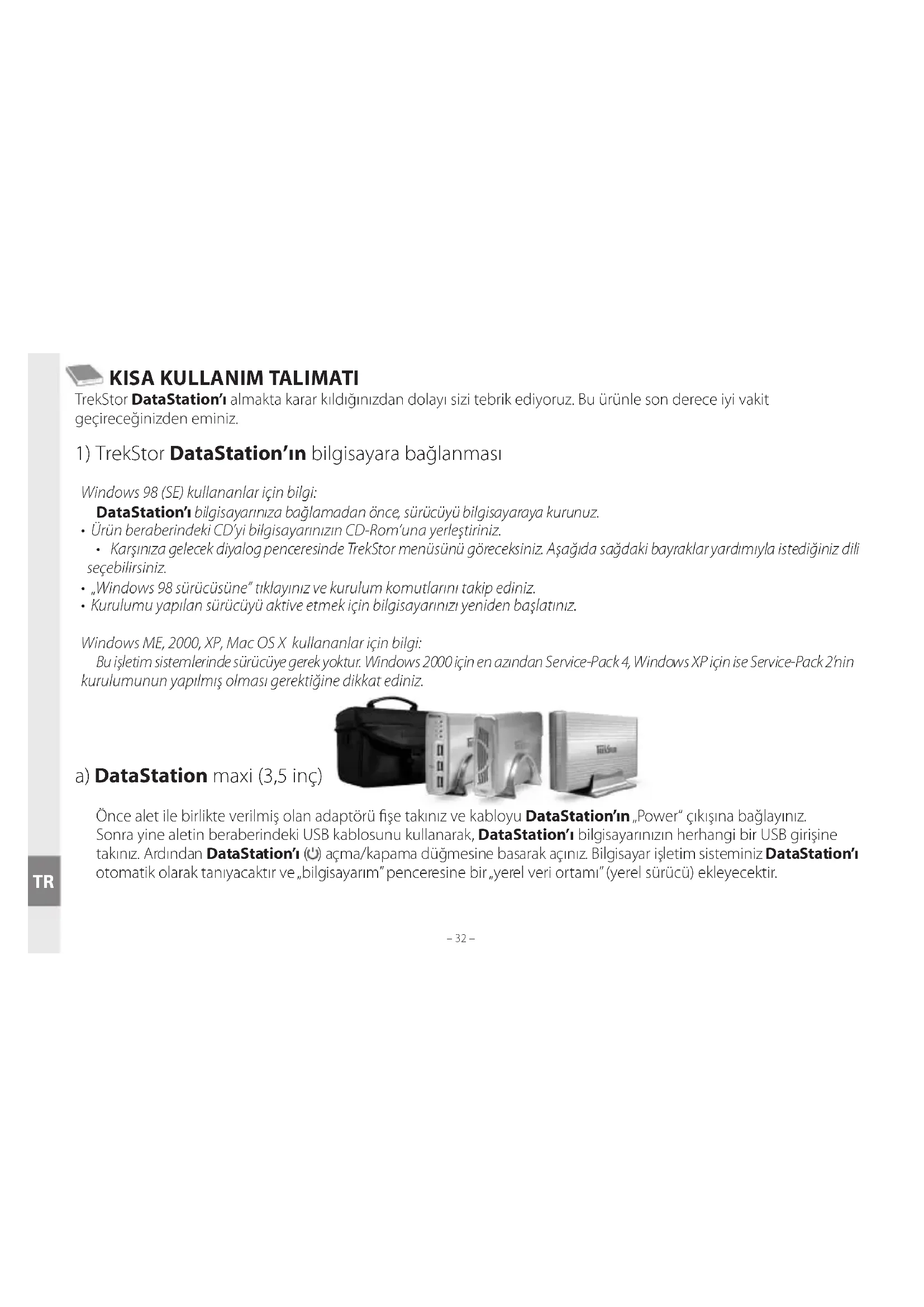 Windows 98 (SE) kullananlar için bilgi: DataStation’ı bilgisayarınıza bağlamadan önce, sürücüyü bilgisayaraya kurunuz.