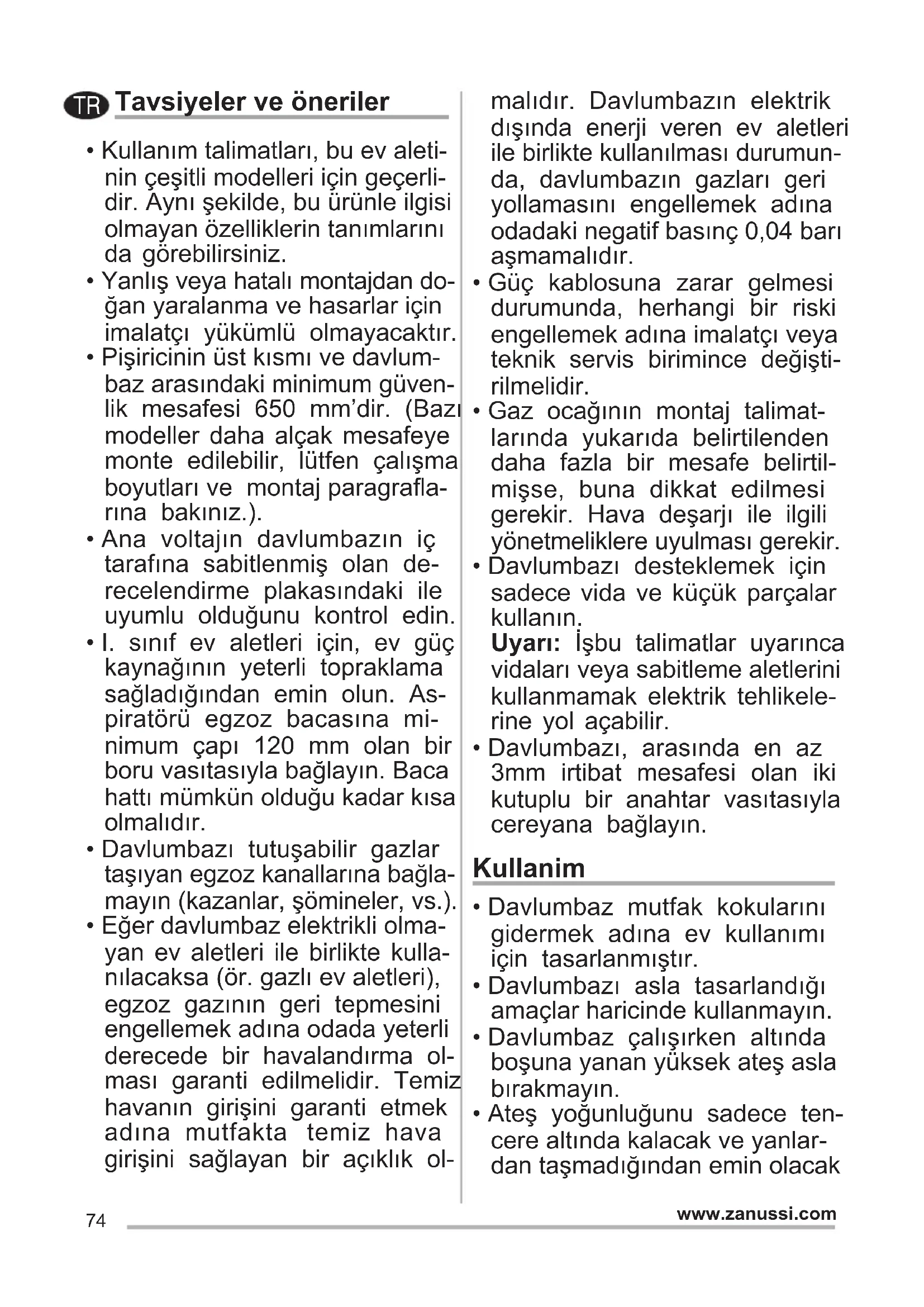 - Davlumbazı asla tasarlandığı amaçlar haricinde kullanmayın.