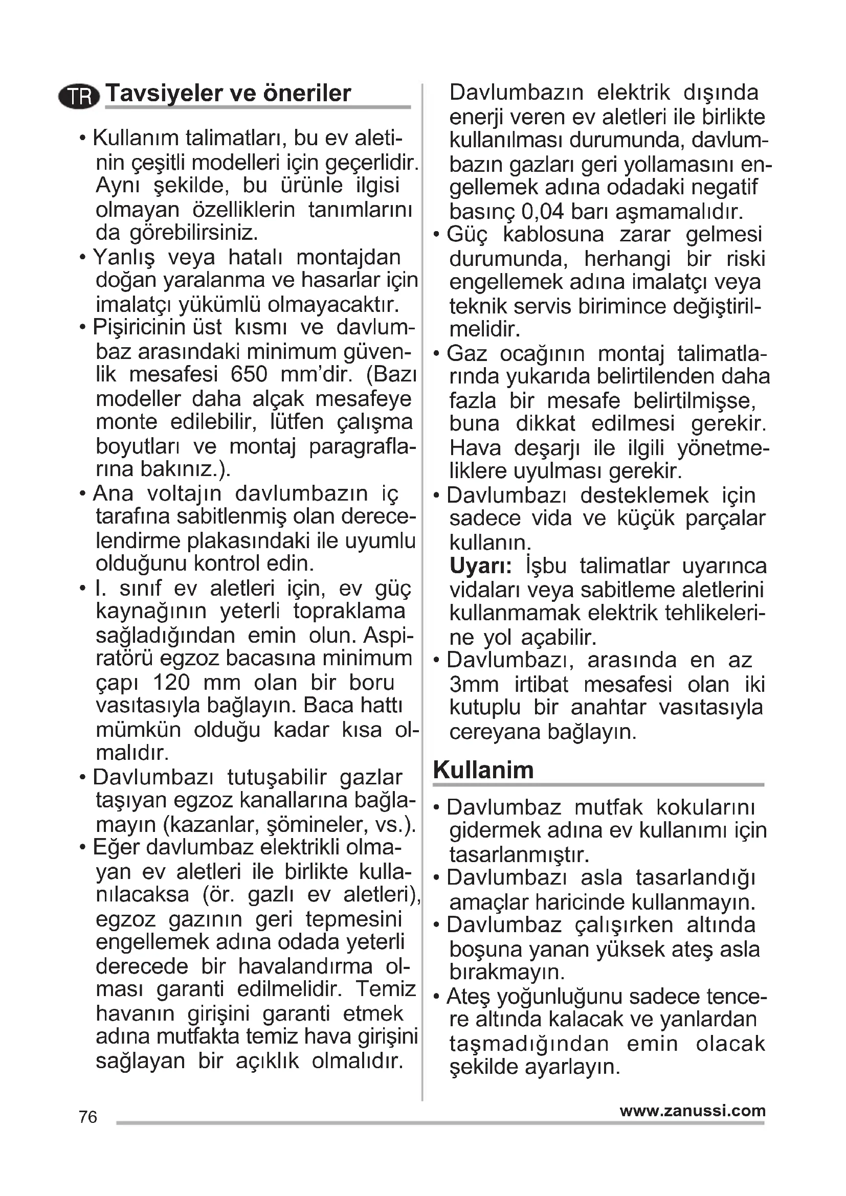 - Davlumbazı asla tasarlandığı amaçlar haricinde kullanmayın.