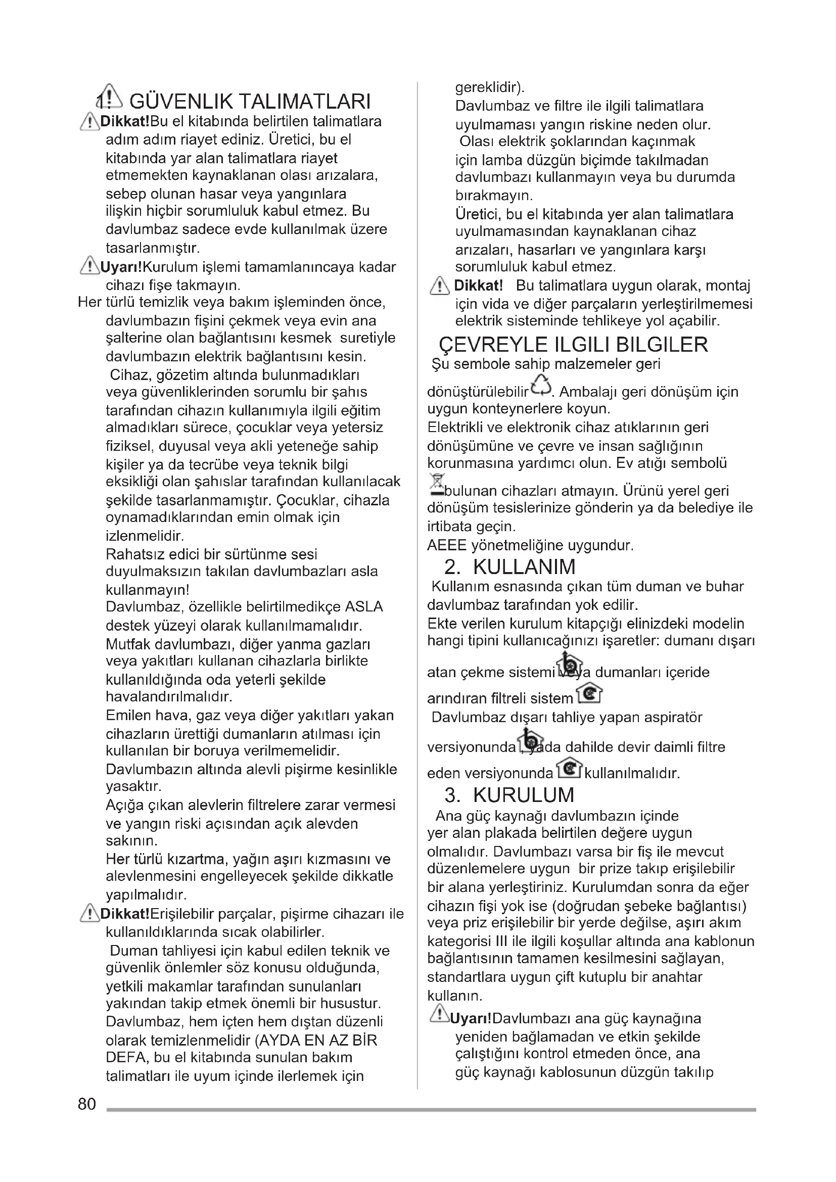 Ocak davlumbaz Kullanma Kılavuzu 80