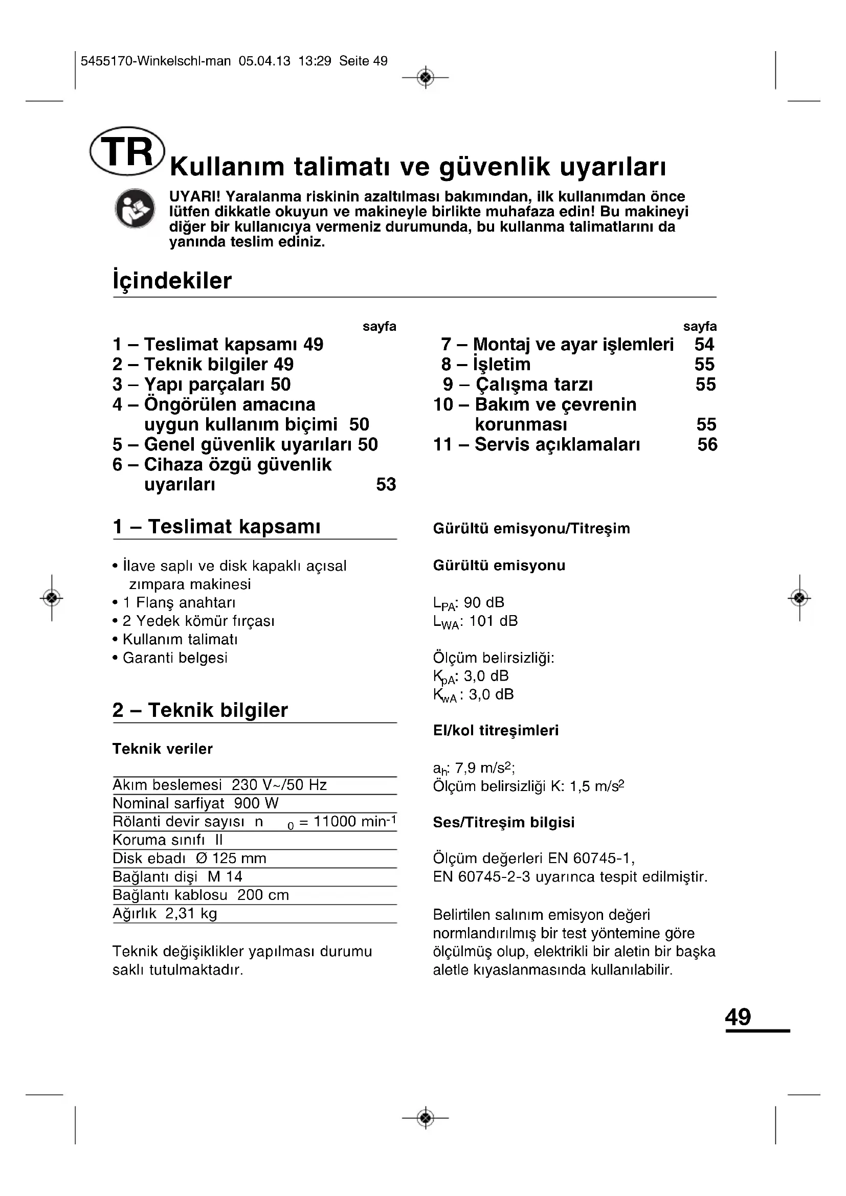 1 – Teslimat kapsamı 49