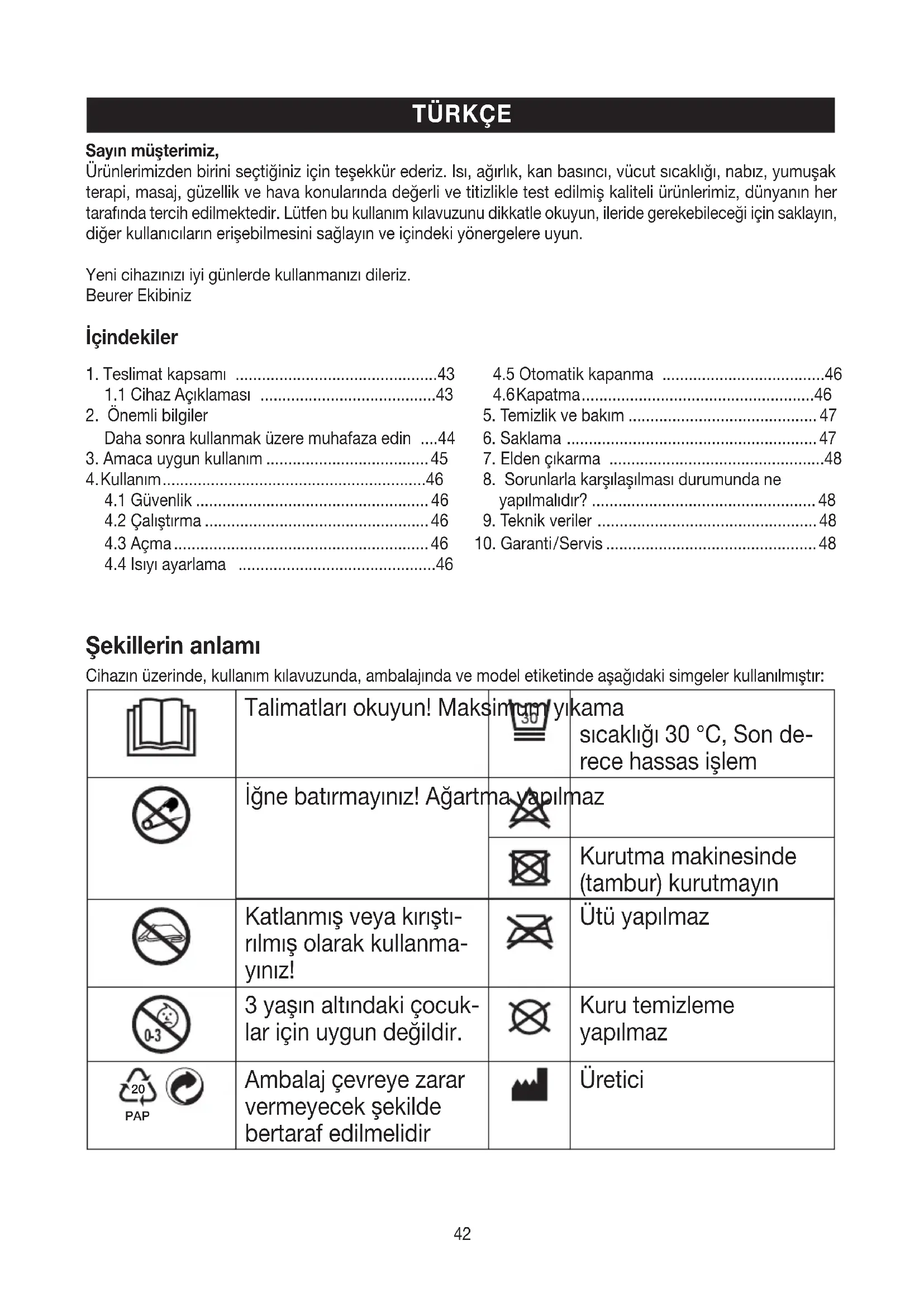 | Bak m ve onar m | 30 C'de makinede y kanabilir, y klemden nce fi i kar n z, yumu5flat c4 kullanmay n. |