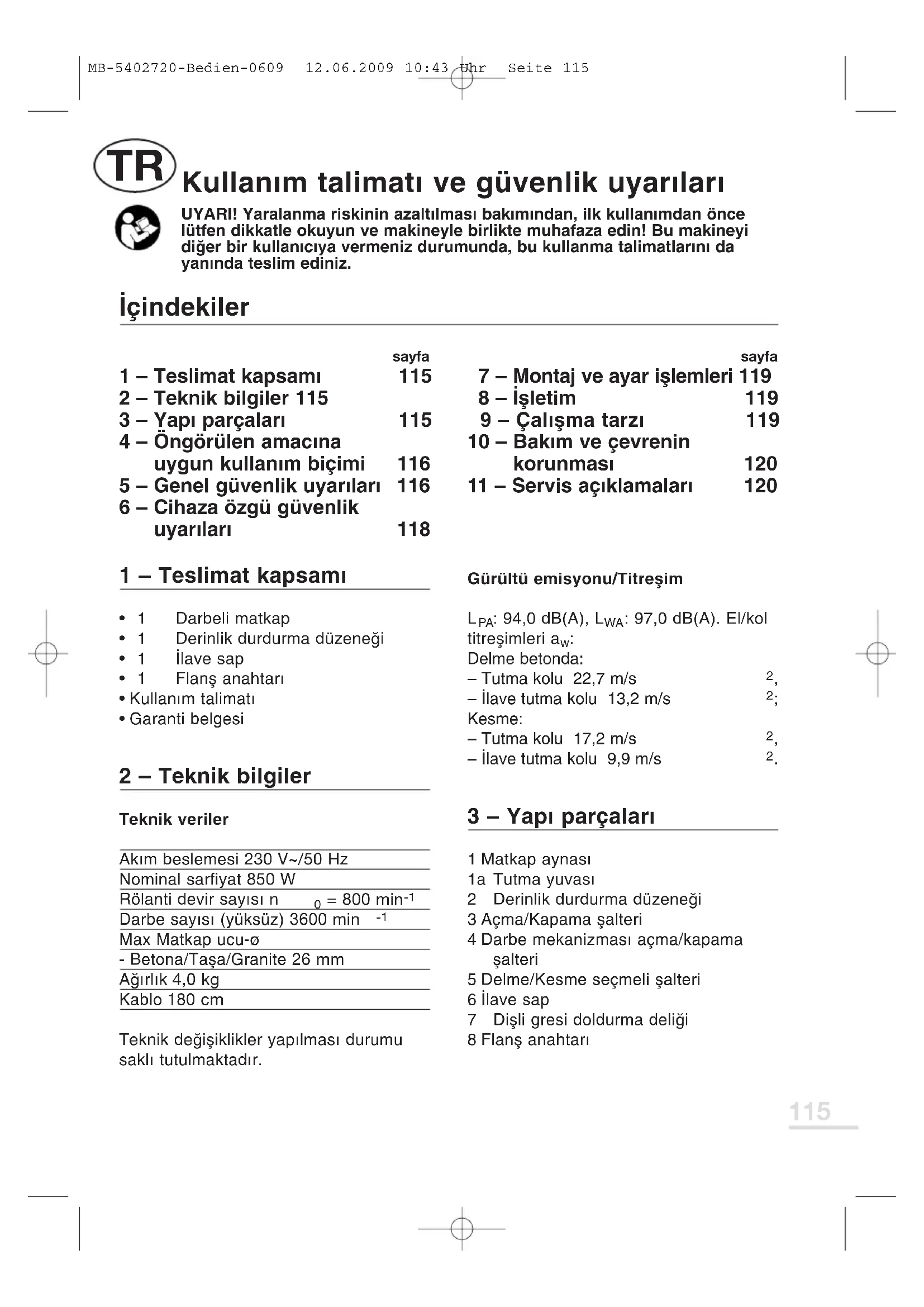| 1 – Teslimat kapsamı | sayfa 115 |