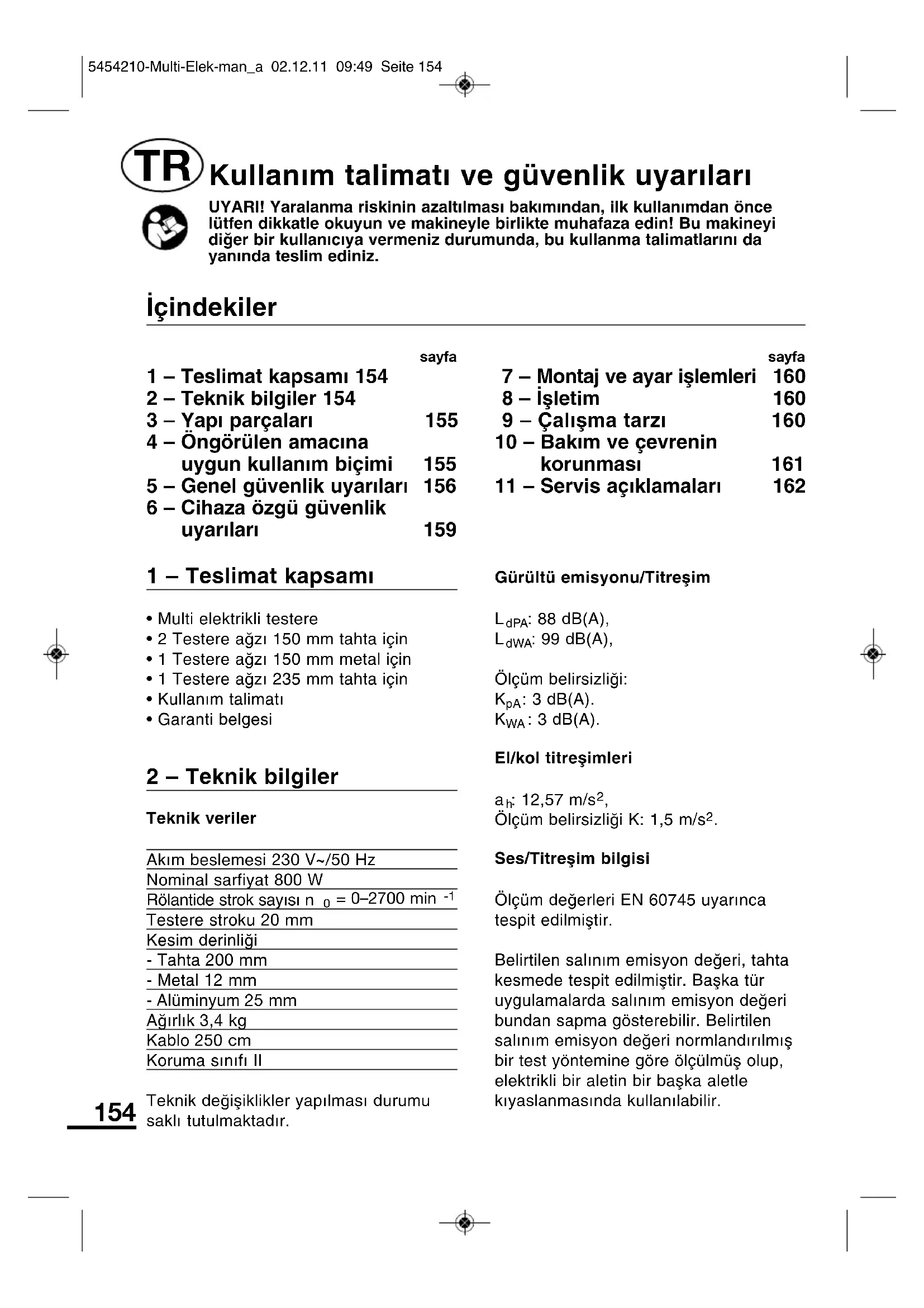 a Aletinizi sadece yetkili personele ve orijinal yedek parça kullanma koşulu ile onartınız. Bu sayede aletin güvenliğini sürekli hale getirirsiniz.