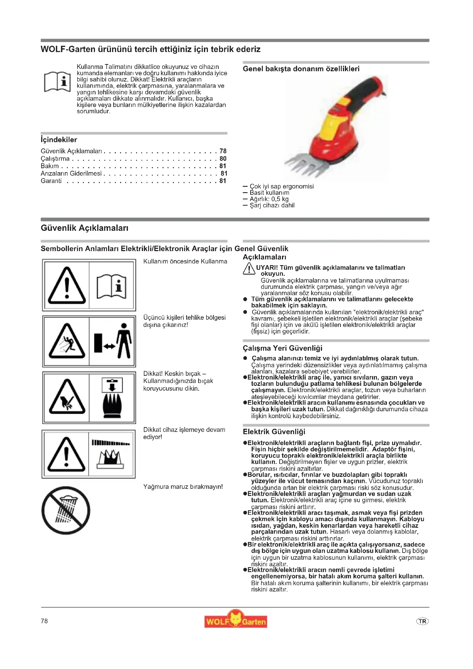 - WOLF-Garten ürününü tercih etti¼iniz için tebrik ederiz ½çindekiler Güvenlik Açklamalar p. 78