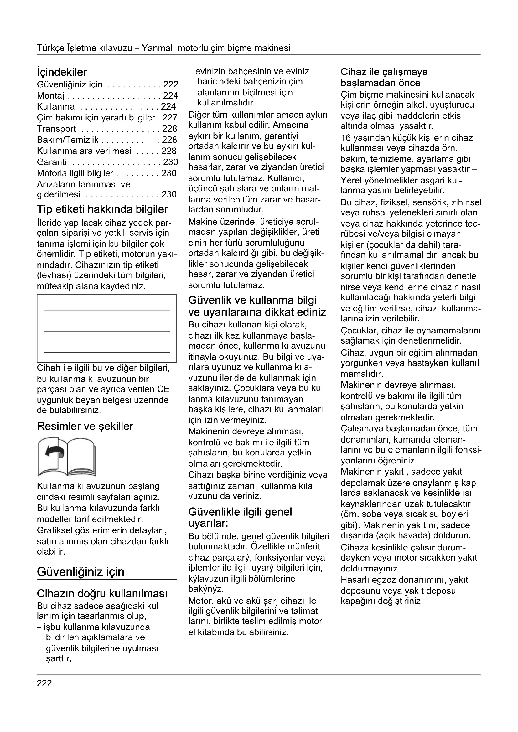 - İçindekiler Güvenliğiniz için p. 222