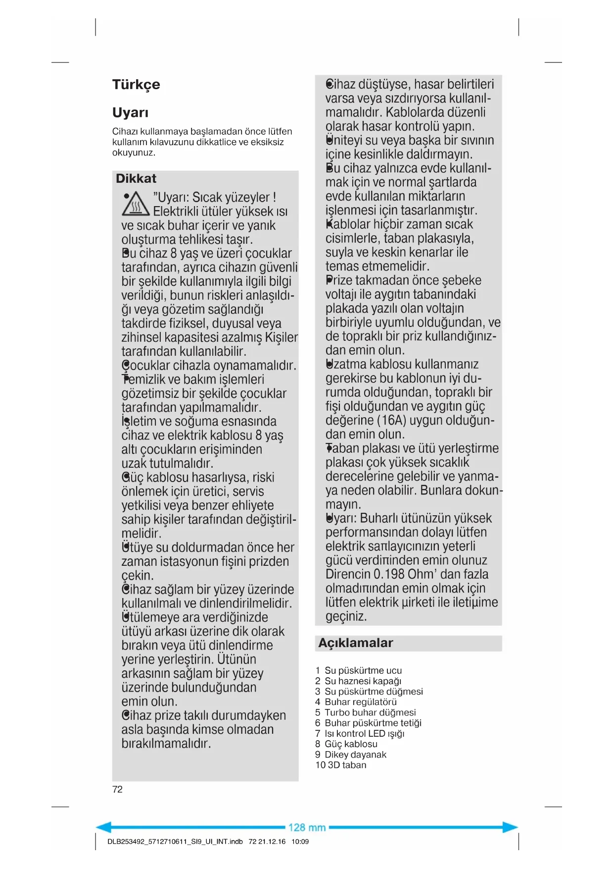 DLB253492_5712710611_SI9_UI_INT.indb 71 21.12.16 10:09Türkçe Uyarı Cihazı kullanmaya başlamadan önce lütfen kullanım kılavuzunu dikkatlice ve eksiksiz okuyunuz. Dikkat