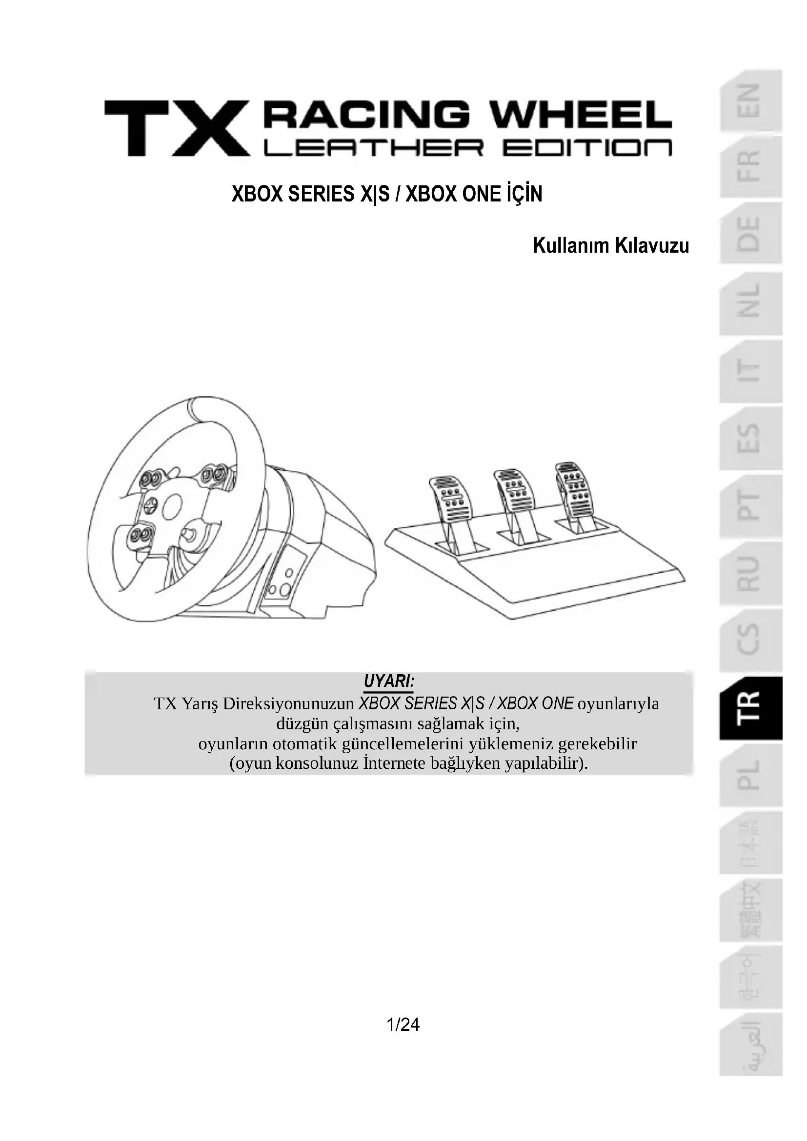 UYARI: TX Yarış Direksiyonunuzun XBOX SERIES X|S / XBOX ONE oyunlarıyla düzgün çalışmasını sağlamak için, oyunların otomatik güncellemelerini yüklemeniz gerekebilir (oyun konsolunuz İnternete bağlıyken yapılabilir).2/24