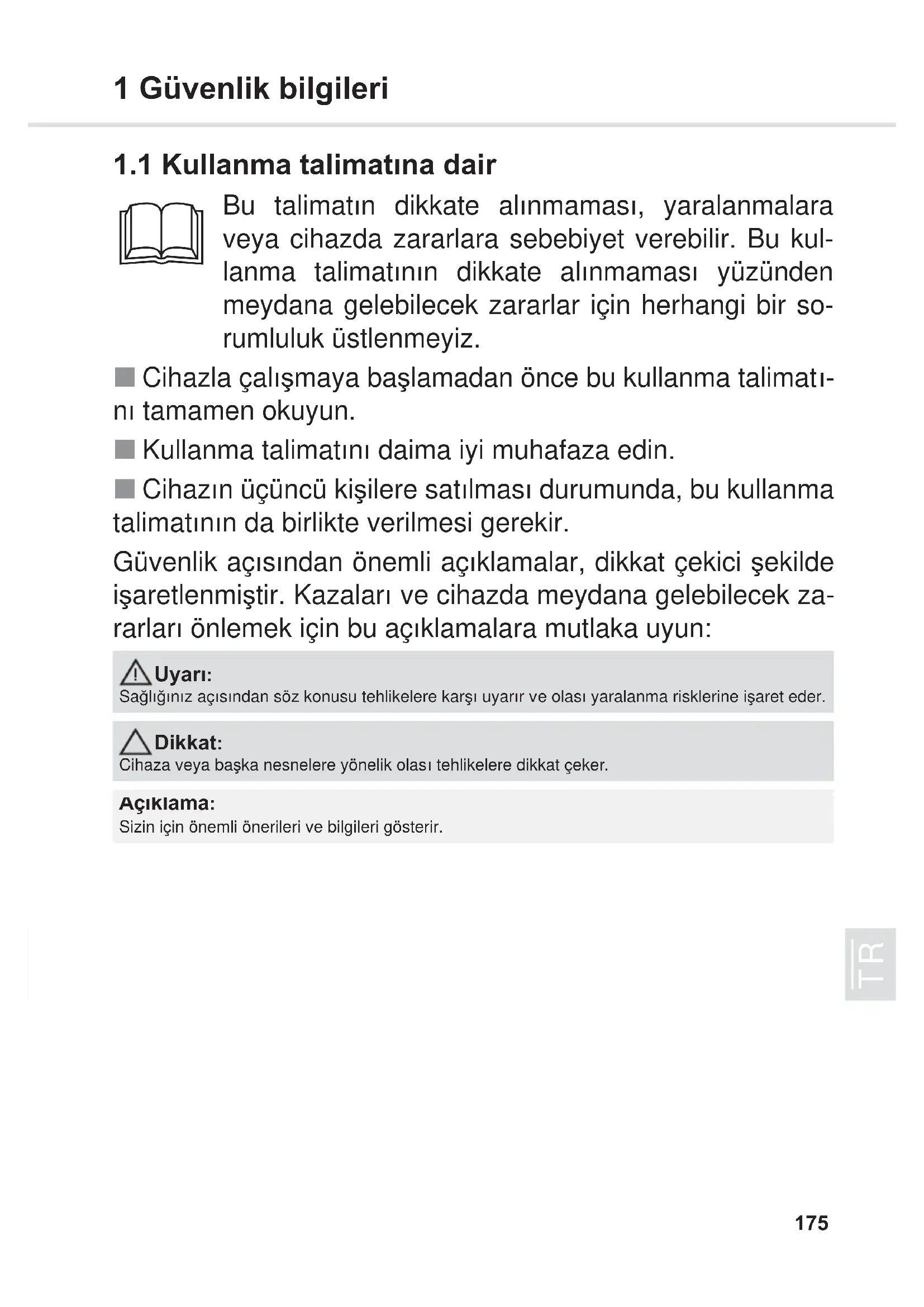 1.1 Kullanma talimatÕna dair