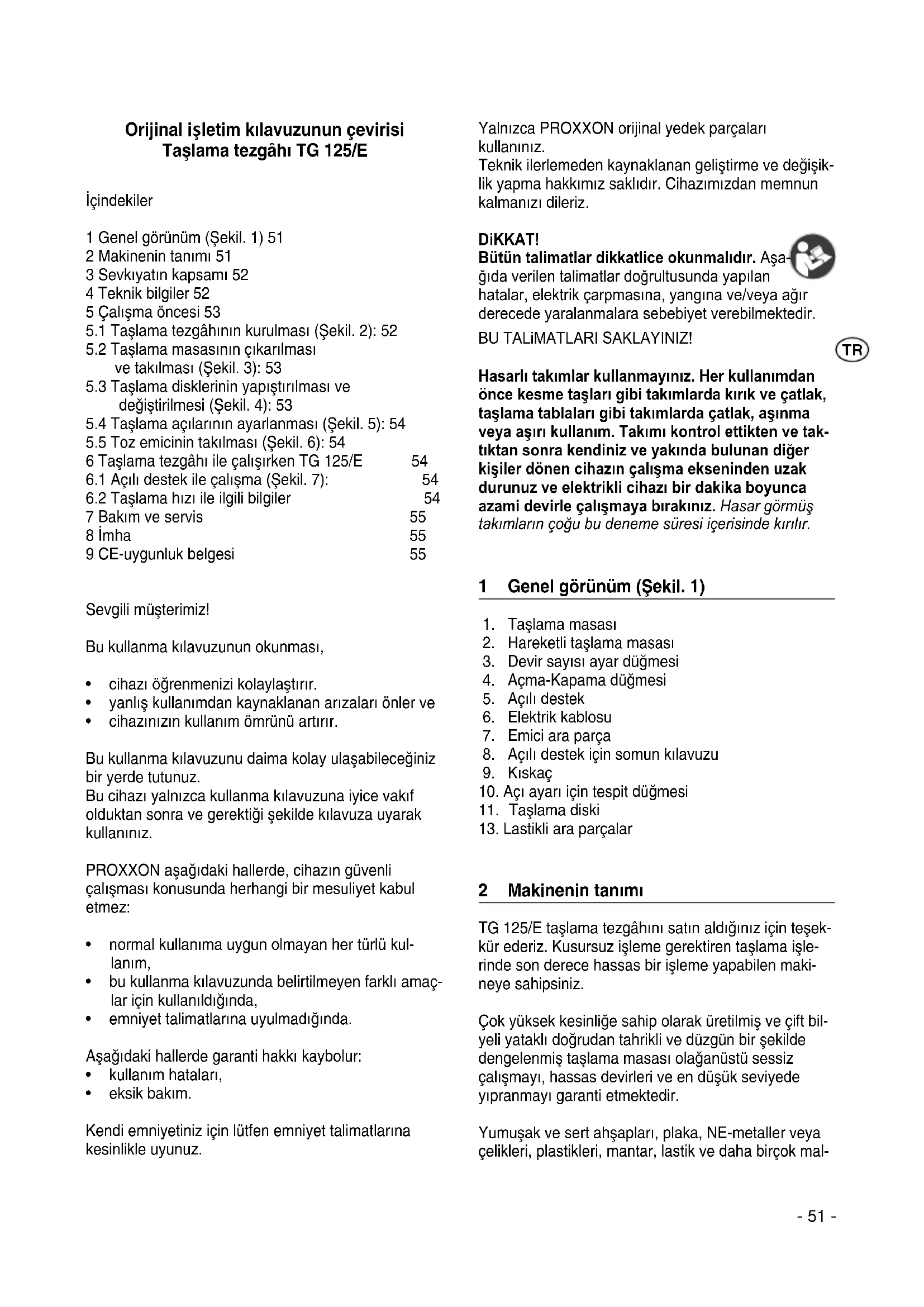 KULLANIM KILAVUZU TG 125E PROXXON
