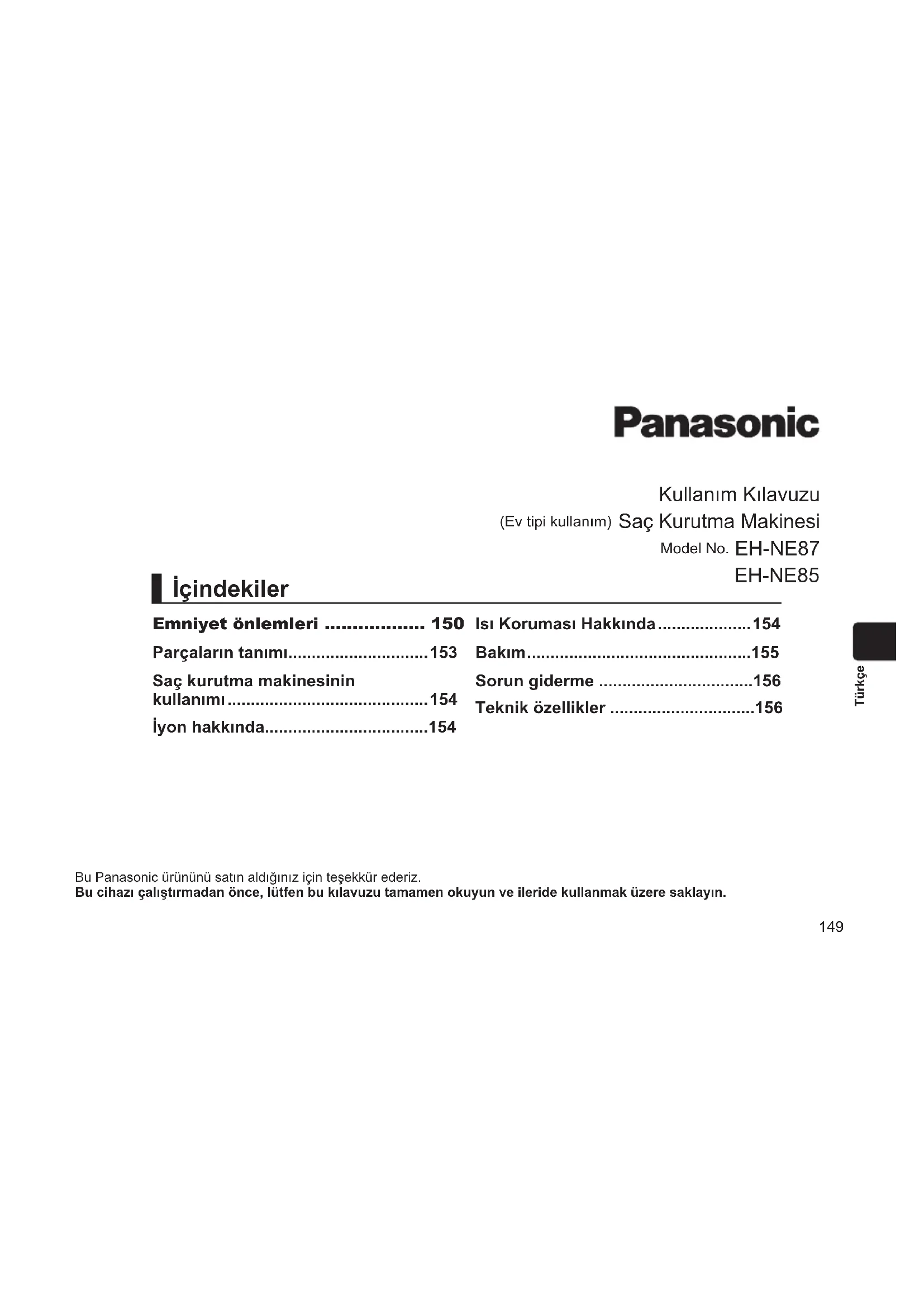 Cihazın kılavuzunu ücretsiz bulun EHNE85 PANASONIC PDF formatında.