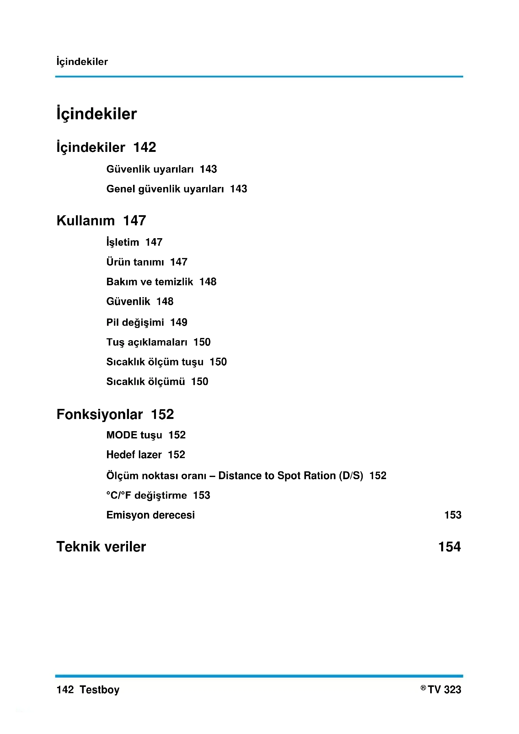 TV 323 - Termometre Testboy - Ücretsiz kullanım kılavuzu