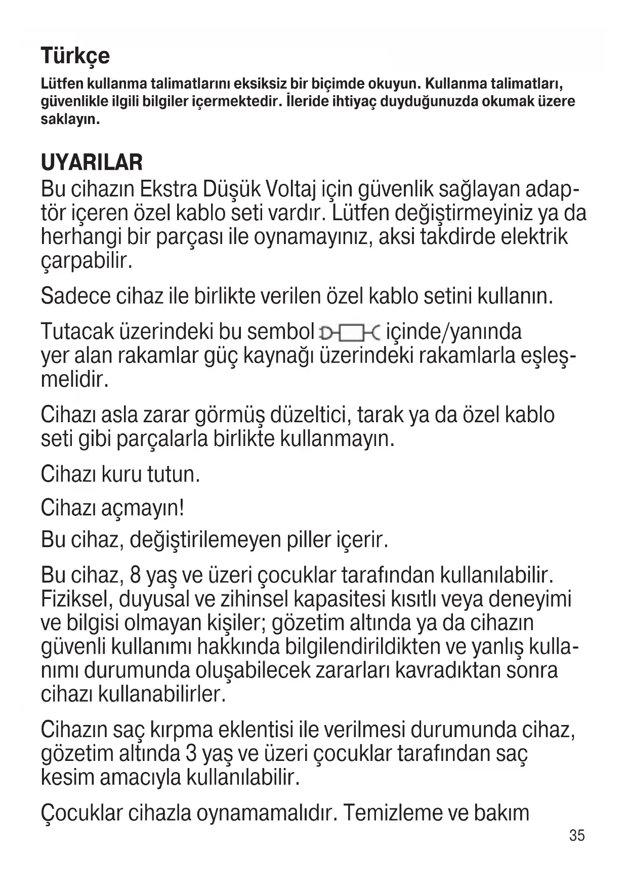 | Dahil aksesuarlar | Kesim tarağı, temizlik fırçası, şarj adaptörü |