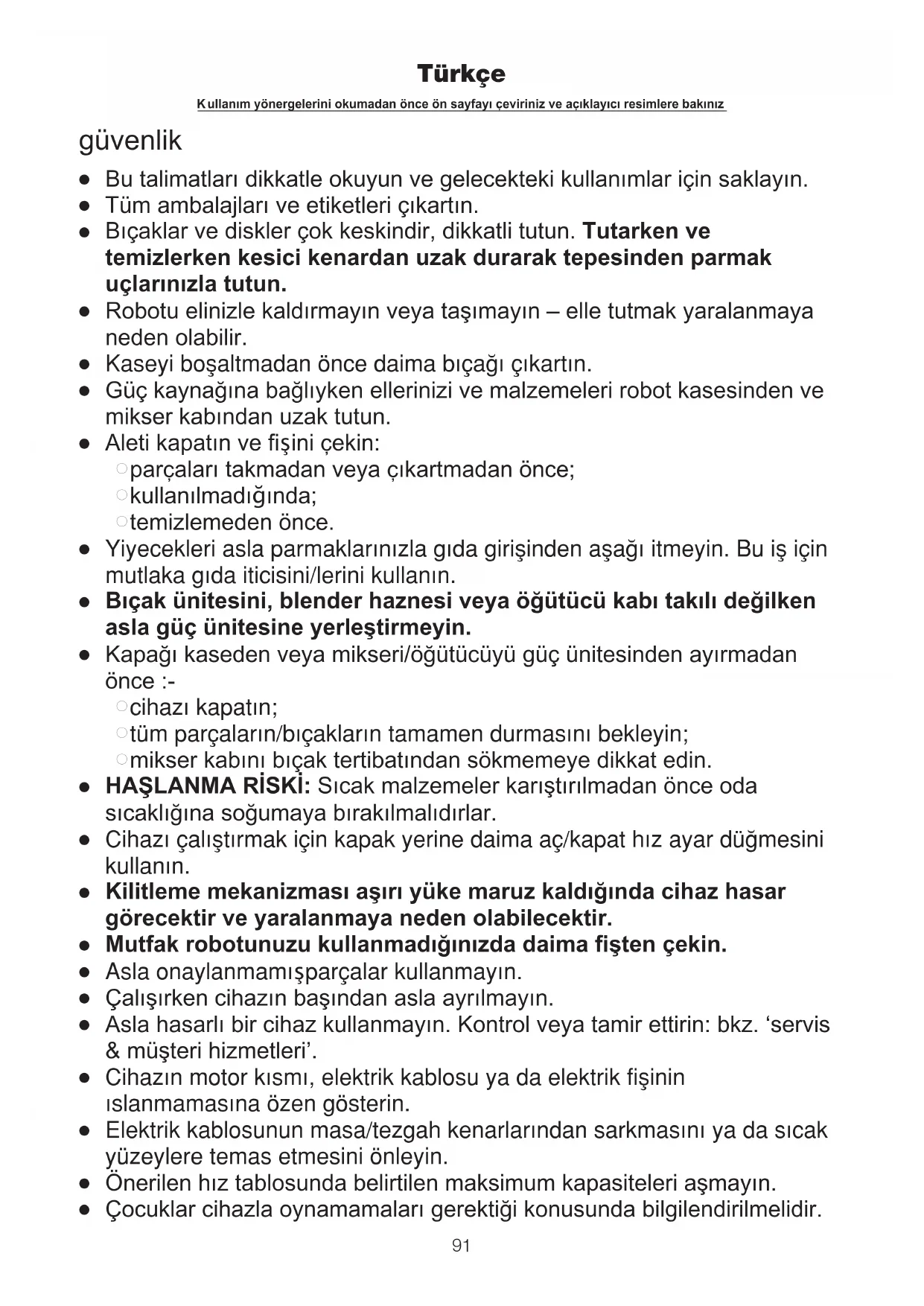 Robotunuzun/mikserinizin hatalı kullanımı yaralanmaya neden olabilir.