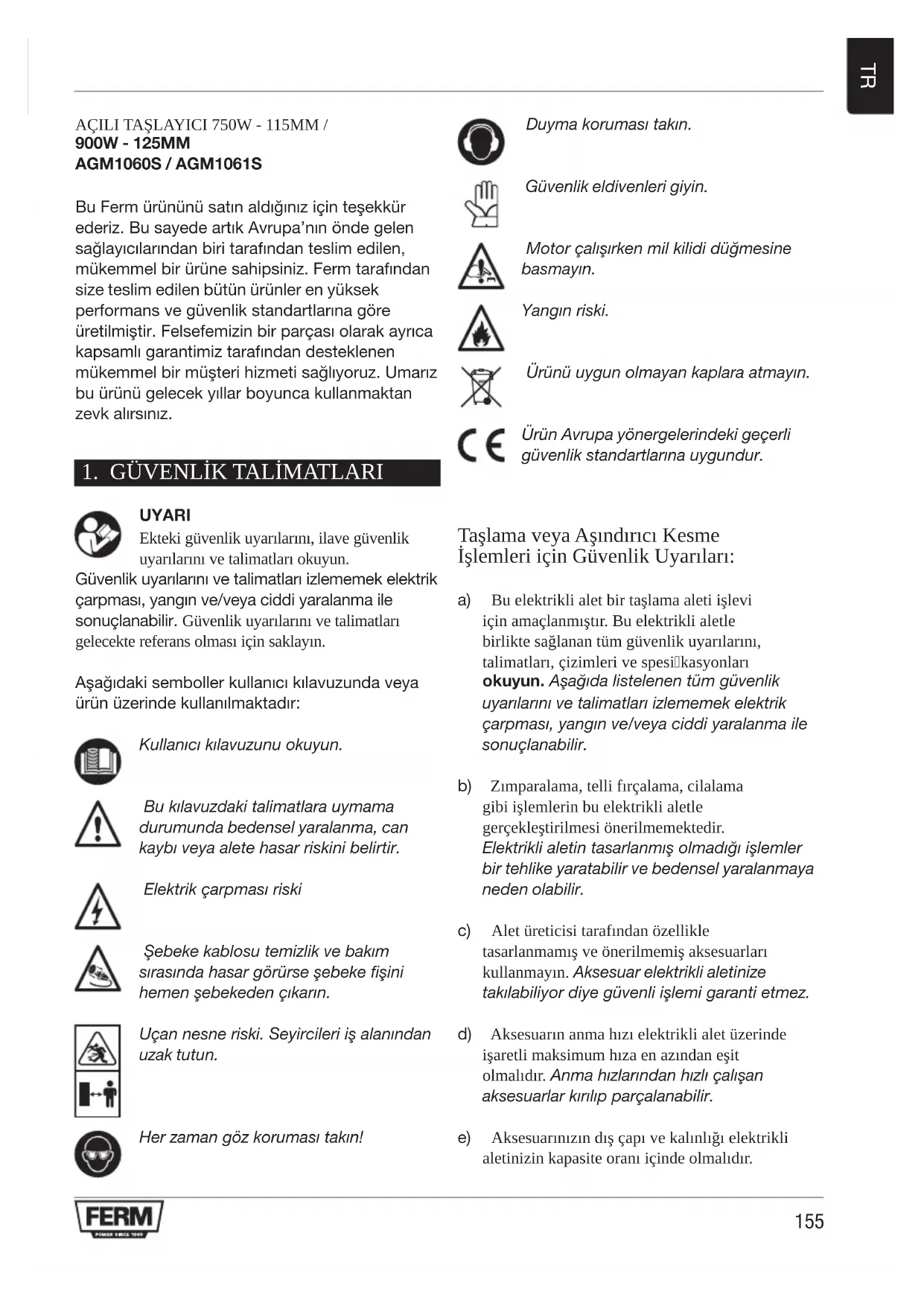 KULLANIM KILAVUZU AGM1061S Ferm
