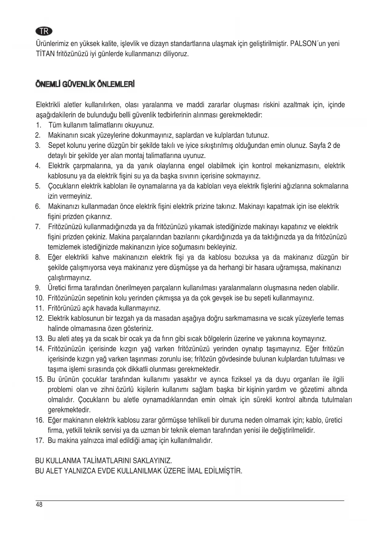 BU ALET YALNIZCA EVDE KULLANILMAK ÜZERE İMAL EDİLMİŞTİR.