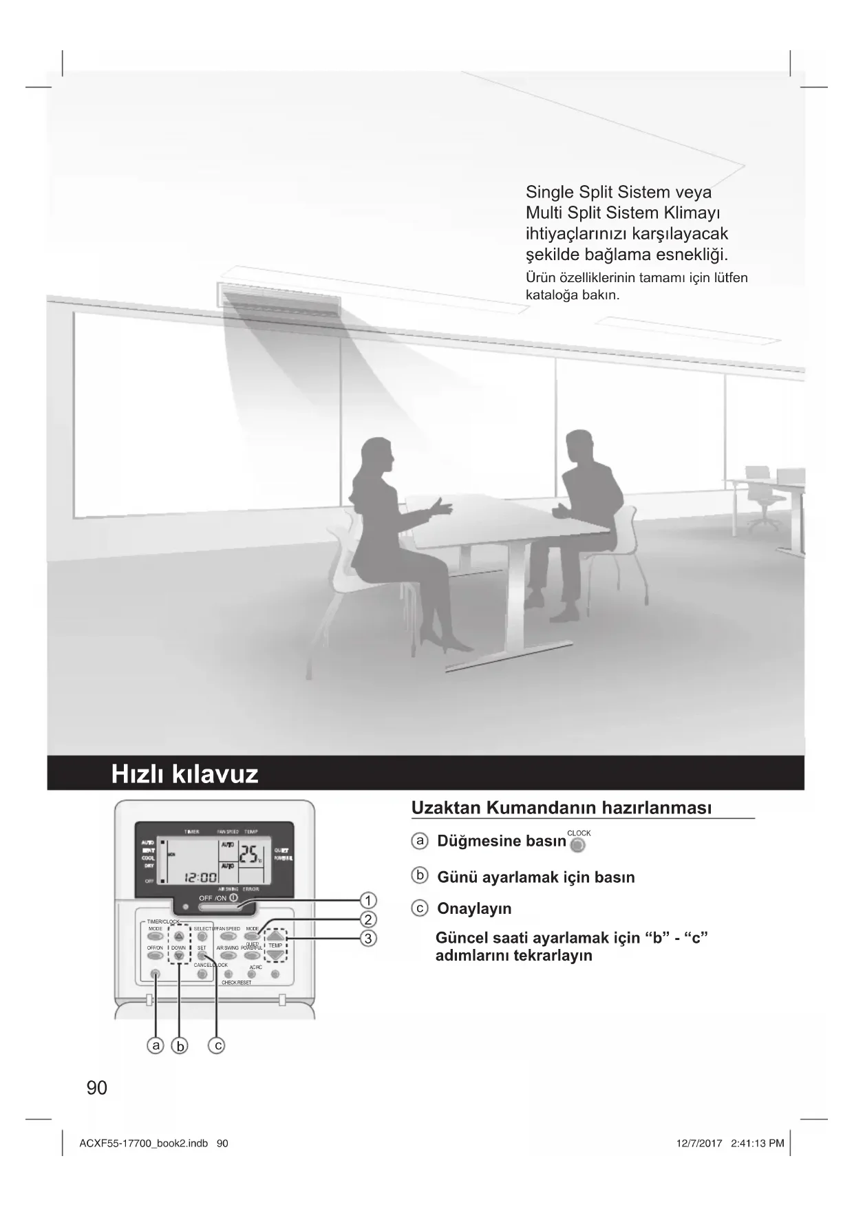 Onaylayın Güncel saati ayarlamak için “b” - “c” adımlarını tekrarlayın Single Split Sistem veya Multi Split Sistem Klimayı ihtiyaçlarınızı karşılayacak şekilde bağlama esnekliği. Ürün özelliklerinin tamamı için lütfen kataloğa bakın. OFF