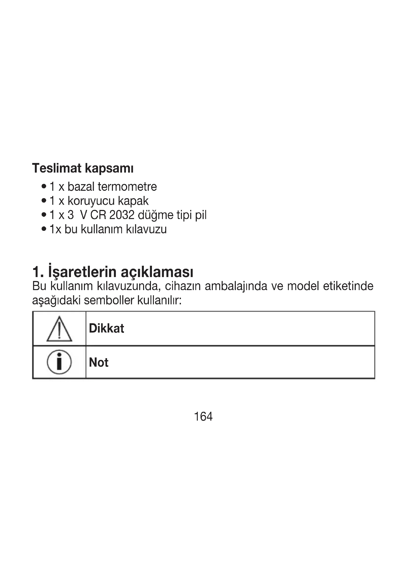 Termometre açılırken kendi kendini test eder. Ölçüm doğruluğunun kontrol edilmesi gerekli değildir.170
