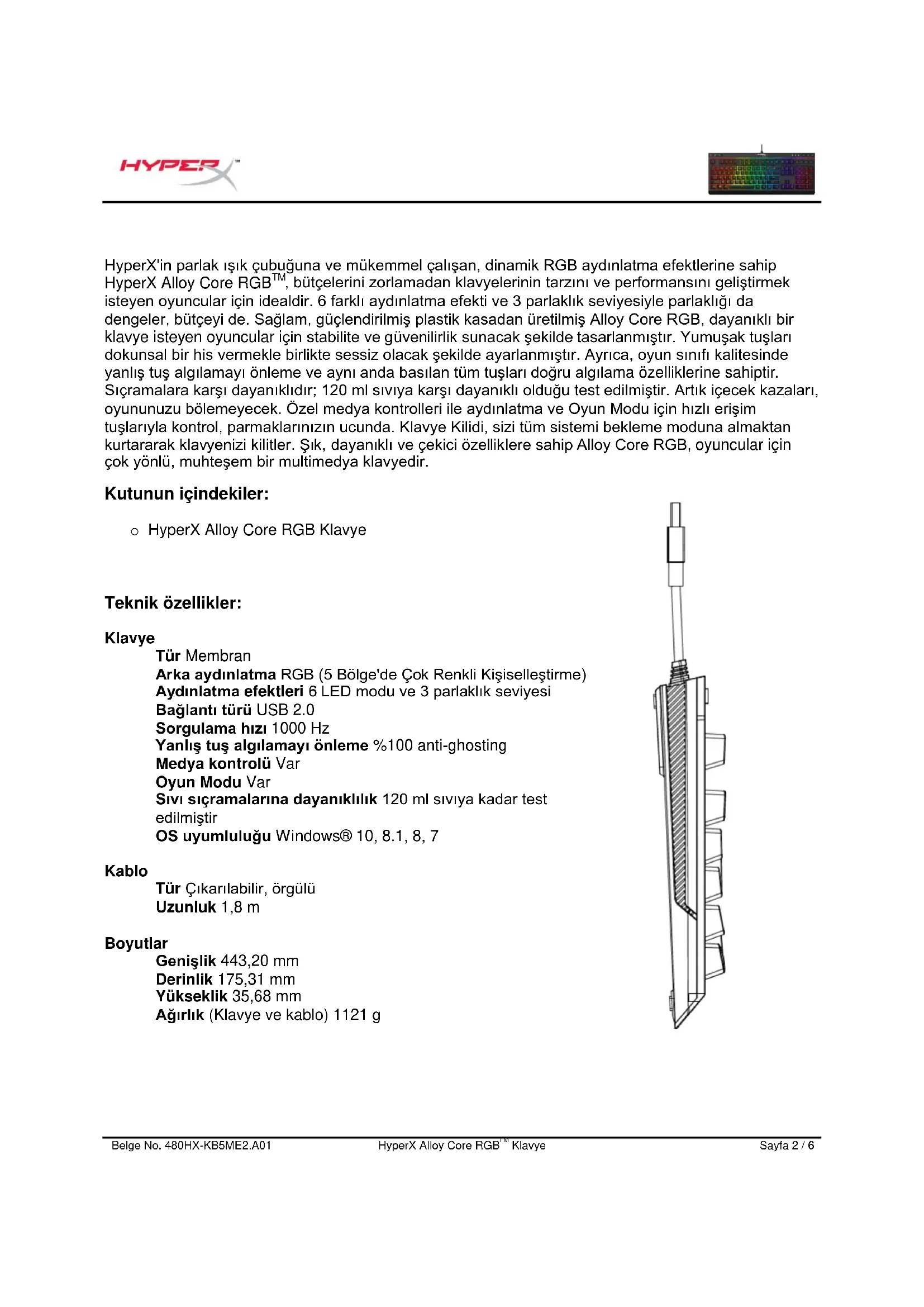 Kutunun içindekiler: o HyperX Alloy Core RGB Klavye