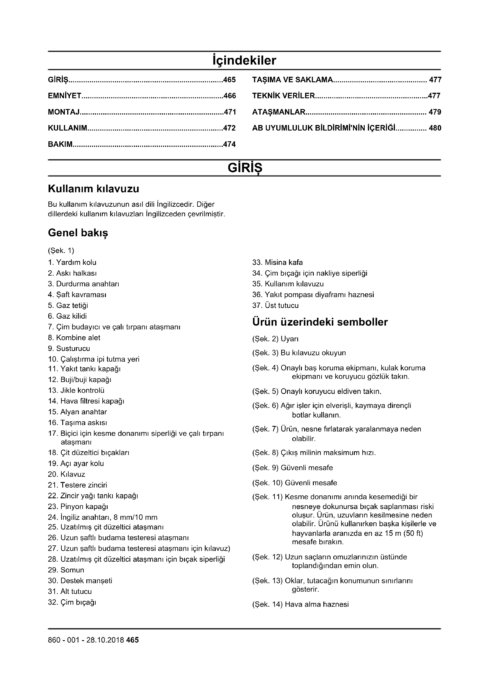860 - 001 - 28.10.2018 477Eşdeğer titreşim düzeyi (ahv, eq), çalı tırpanı ataşmanı