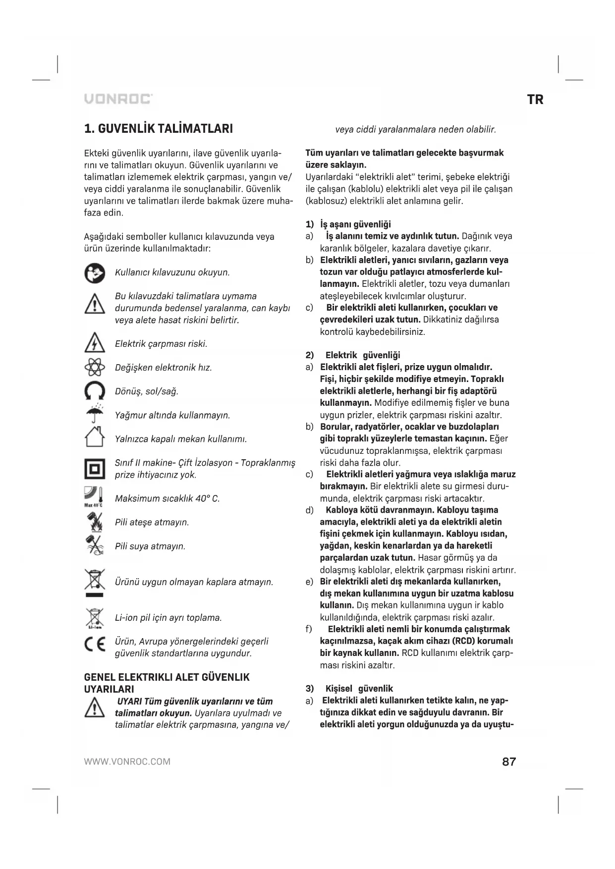 Orijinal talimatların çevirisi 87WWW.VONROC.COM