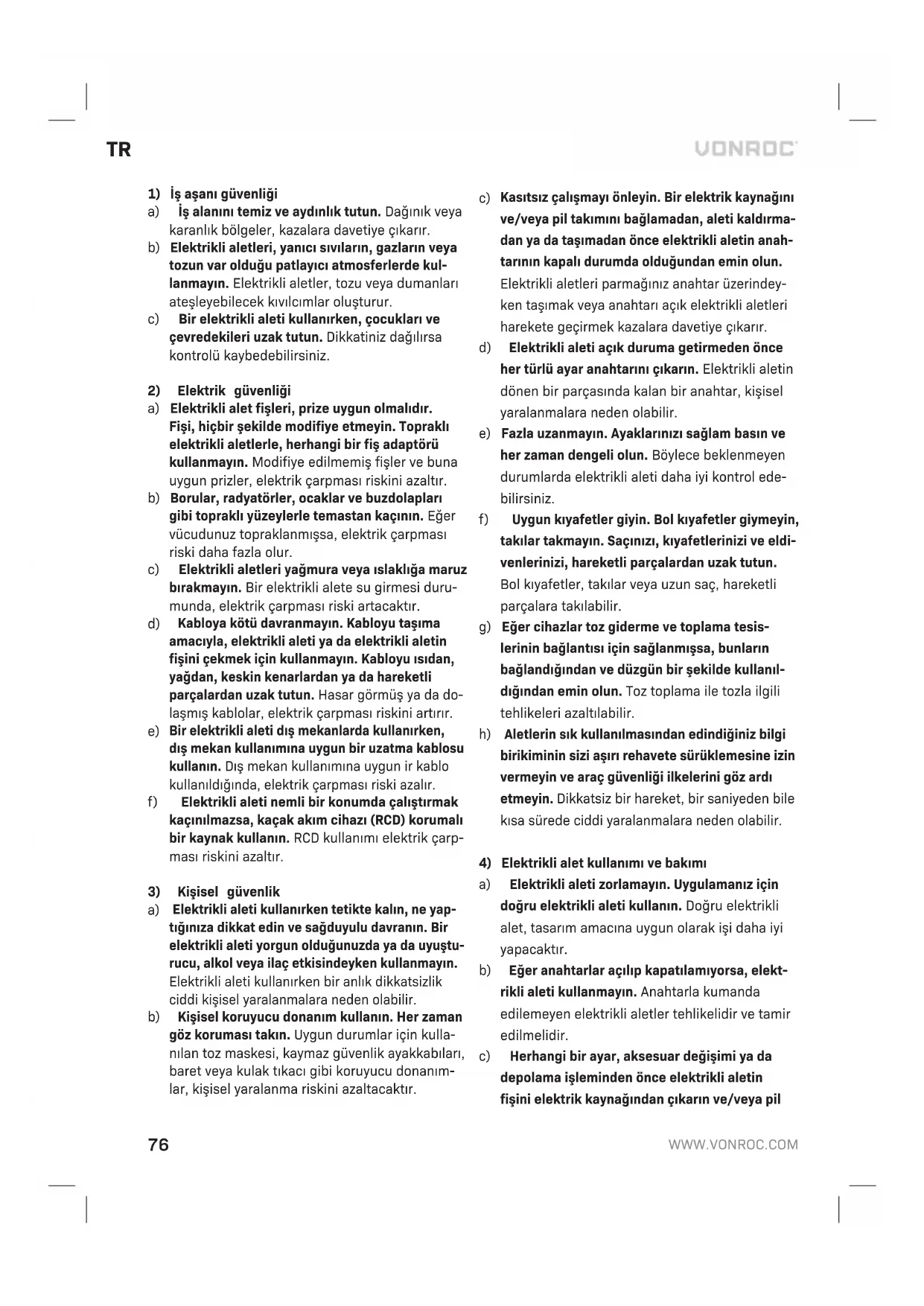 Orijinal talimatların çevirisi 75WWW.VONROC.COM2