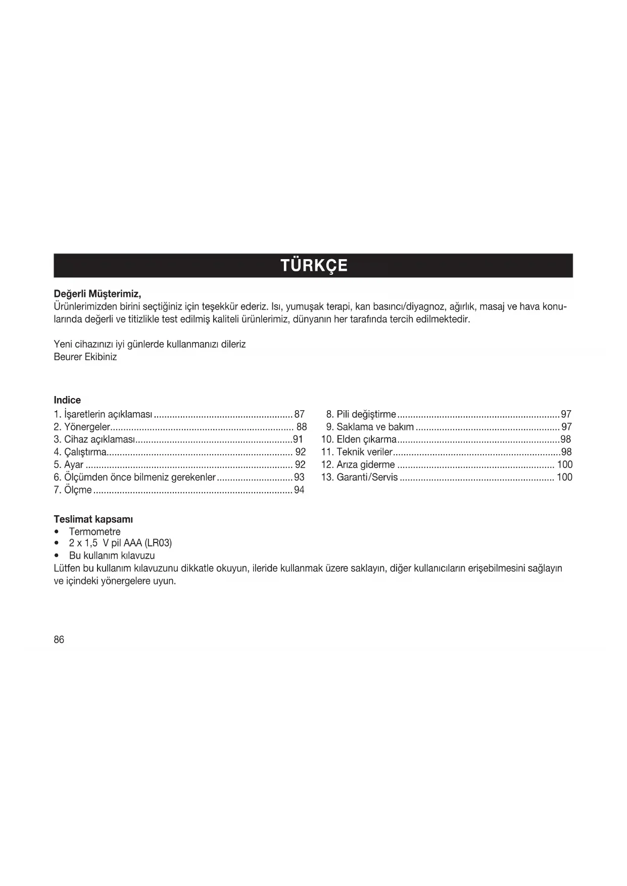 Bu termometre, hassas elektronik bir cihazdır. Onu dikkatli bir şekilde kullanın ve mekanik darbelere maruz bırakmayın.