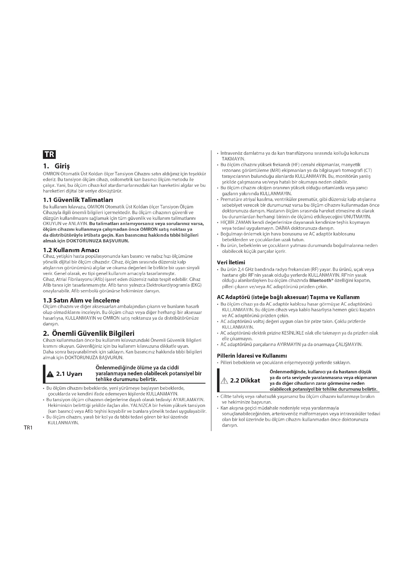Bu kullanım kılavuzu, OMRON Otomatik Üst Koldan ölçer Tansiyon Ölçüm Cihazıyla ilgili önemli bilgileri içermektedir. Bu ölçüm cihazının güvenli ve düzgün kullanılmasını sağlamak için tüm güvenlik ve kullanım talimatlarını OKUYUN ve ANLAYIN. Bu talmatları anlamıyorsanız veya sorularınız varsa, ölçüm chazını kullanmaya çalışmadan önce OMRON satış noktası ya da dstrbütörüyle rtbata geçn. Kan basıncınız hakkında tıbb blgler almak çn DOKTORUNUZA BAŞVURUN.